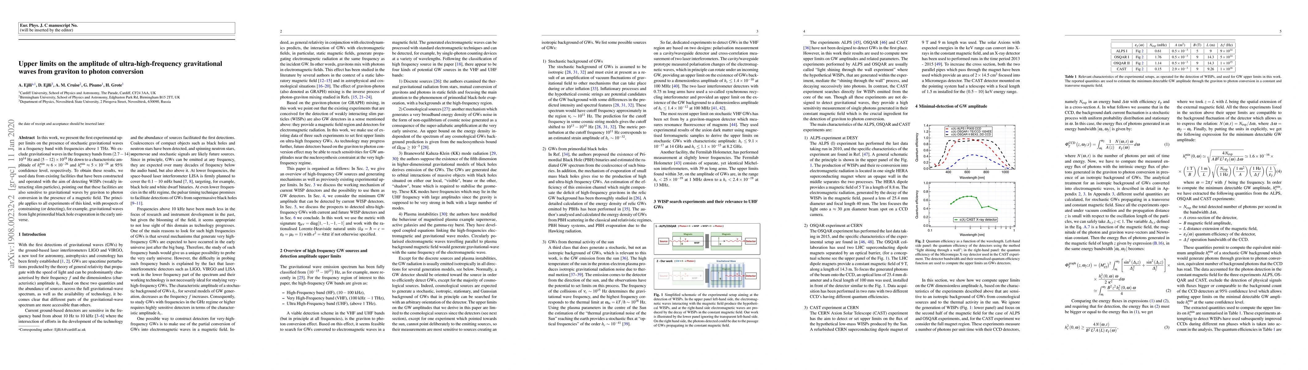 This paper sets new experimental upper limits on ultra-high-frequency gravitational waves in two frequency bands, detecting none down to characteristic amplitudes of $6\times 10^{-26}$ and $5\times 10^{-28}$ at 95% confidence. The results leverage data from facilities designed for detecting Weakly Interacting Slim Particles, which are also sensitive to gravitational waves via graviton-photon mixing in magnetic fields.