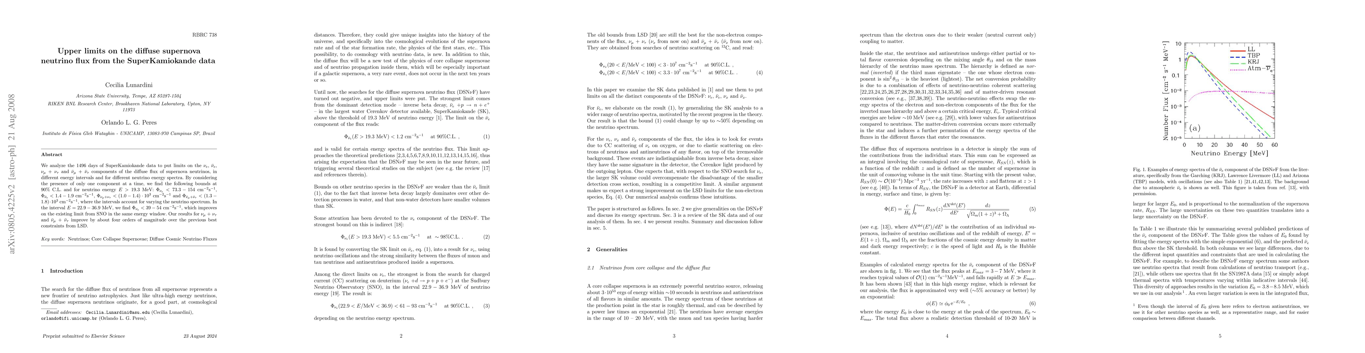 We analyze the 1496 days of SuperKamiokande data to put limits on the nue, anti-nue, numu + nutau and anti-numu + anti-nutau components of the diffuse flux of supernova neutrinos, in different energy intervals and for different neutrino energy spectra. By considering the presence of only one component at a time, we find the following bounds at 90% C.L. and for neutrino energy E>19.3$ MeV: Phi_{nue}<73.3-154 cm^-2 s^-1, Phi_{anti-nue} <1.4-1.9 cm^-2 s^-1, Phi_{numu+nutau} <(1.0-1.4) 10^3 cm^-2 s^-1, and Phi_{anti-numu+ anti-nutau} <(1.3-1.8) 10^3 cm^-2 s^-1, where the intervals account for varying the neutrino spectrum. In the interval E = 22.9 - 36.9 MeV, we find Phi_{nue}<39-54 cm^-2 s^-1, which improves on the existing limit from SNO in the same energy window. Our results for numu + nutau and anti-numu + anti-nutau improve by about four orders of magnitude over the previous best constraints from LSD.