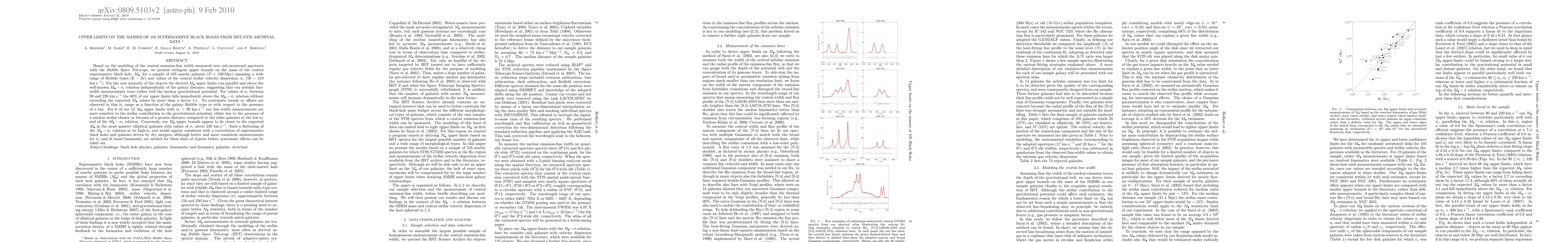 This study uses Hubble Space Telescope data to derive stringent upper limits on the masses of 105 supermassive black holes (MBH) in nearby galaxies, finding that most upper limits align with the MBH-sigma relation. The results suggest that emission-line widths trace nuclear gravitational potential well, with a notable flattening at high stellar velocity dispersions, hinting at coevolution via dry mergers.