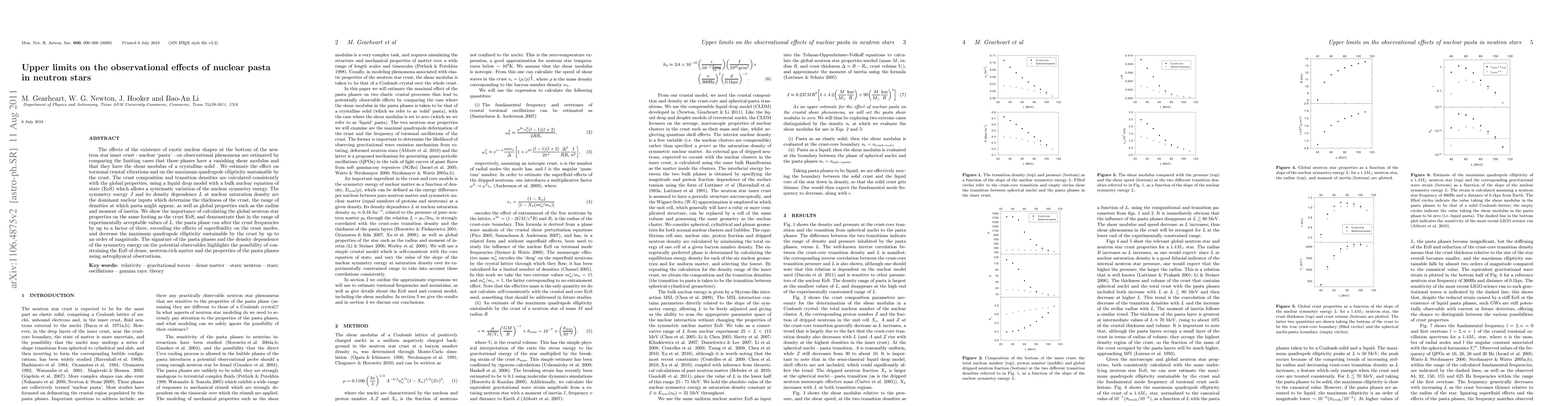 This paper investigates the impact of nuclear "pasta" phases on neutron star observational phenomena, finding that these exotic nuclear shapes can significantly alter torsional crustal vibrations and maximum quadrupole ellipticity. The study emphasizes the importance of consistent calculations of neutron star global properties and the crust equation of state, suggesting that the pasta phase can influence observable properties by up to three times for frequencies and an order of magnitude for ellipticity.