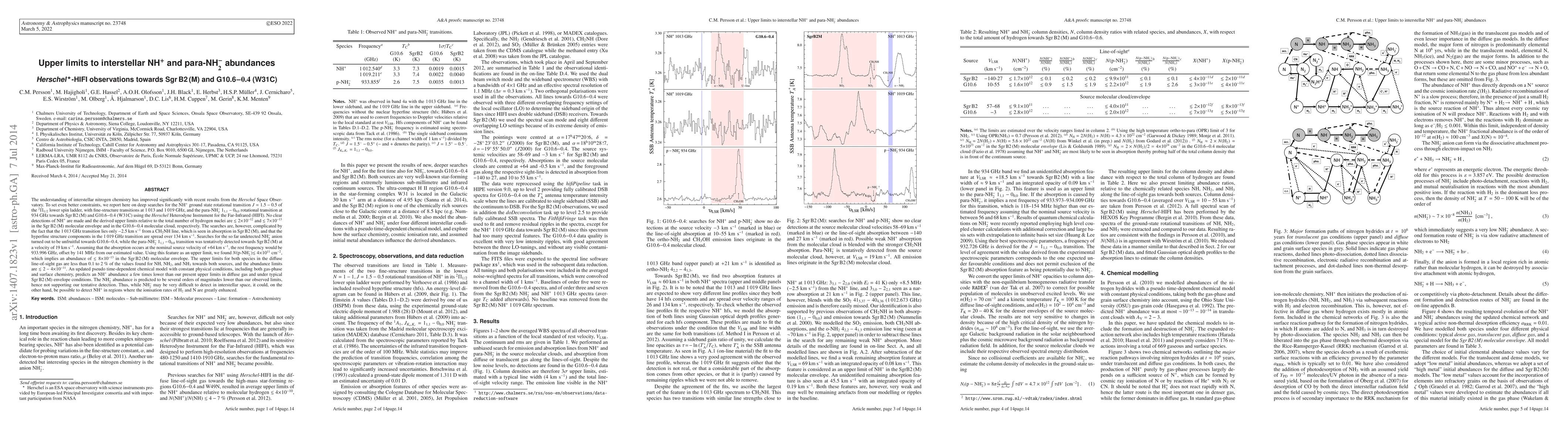 This study using Herschel-HIFI observations sets stringent upper limits for the interstellar abundances of NH+ and para-NH2- in Sgr B2(M) and G10.6-0.4, finding NH+ to be less than 2*10^-12 and para-NH2- less than 4*10^11 cm^-2, indicating these species are significantly less abundant than NH, NH2, and NH3.