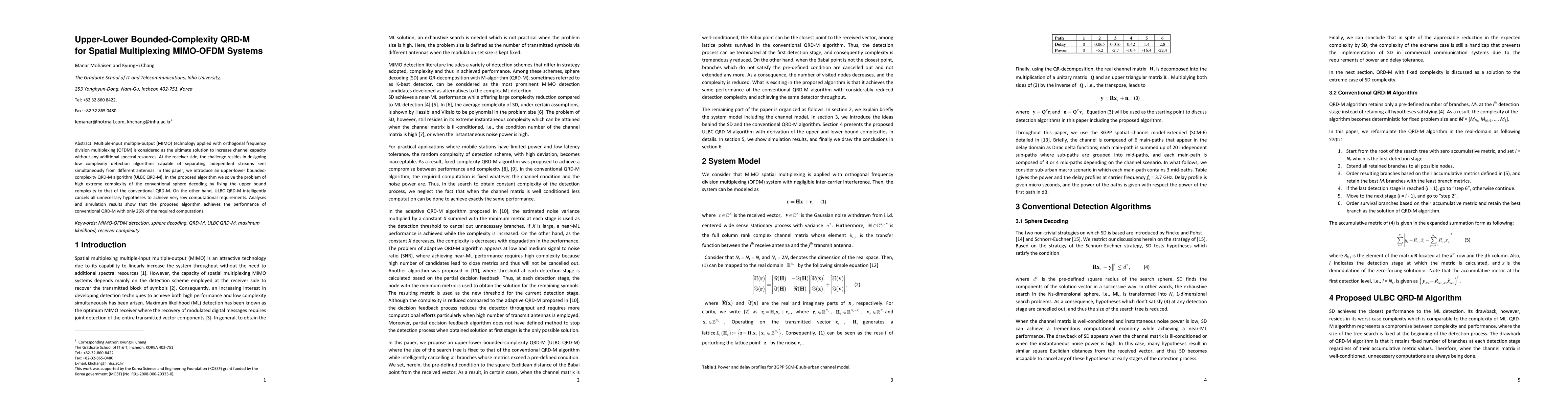 This paper proposes an upper-lower bounded-complexity QRD-M algorithm (ULBC QRD-M) for MIMO-OFDM systems, aiming to balance performance and computational efficiency. The algorithm fixes the upper bound complexity to conventional QRD-M levels while intelligently canceling unnecessary hypotheses to achieve significantly lower computational requirements, demonstrating performance comparable to conventional QRD-M with only 26% of the computations.