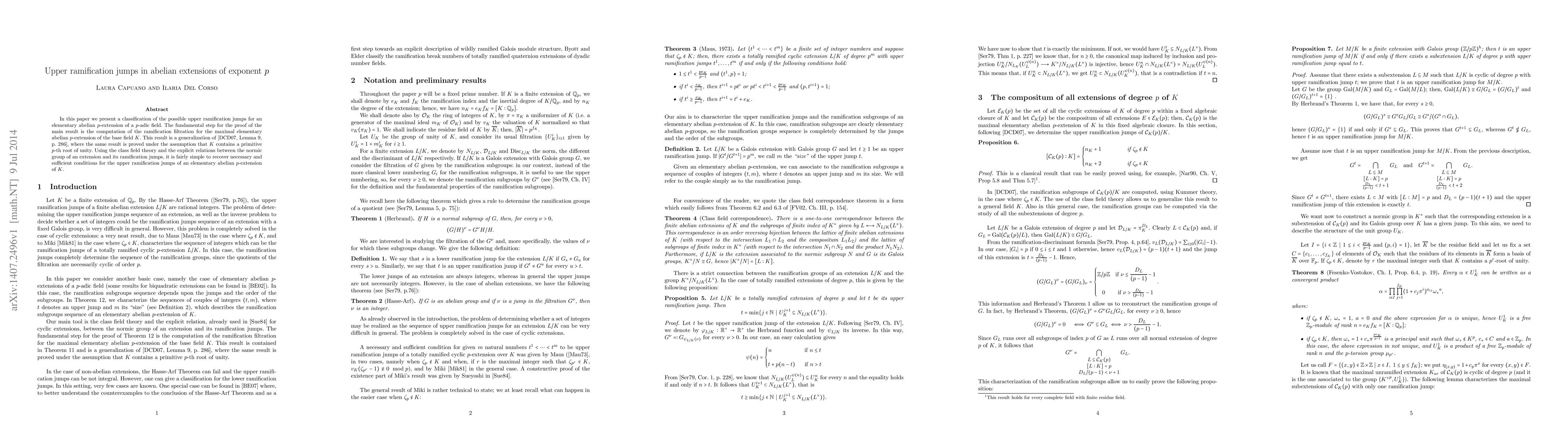 This paper classifies the upper ramification jumps for elementary abelian p-extensions of p-adic fields, generalizing previous work. The key is computing the ramification filtration for the maximal elementary abelian p-extension, using class field theory and normic group relations.