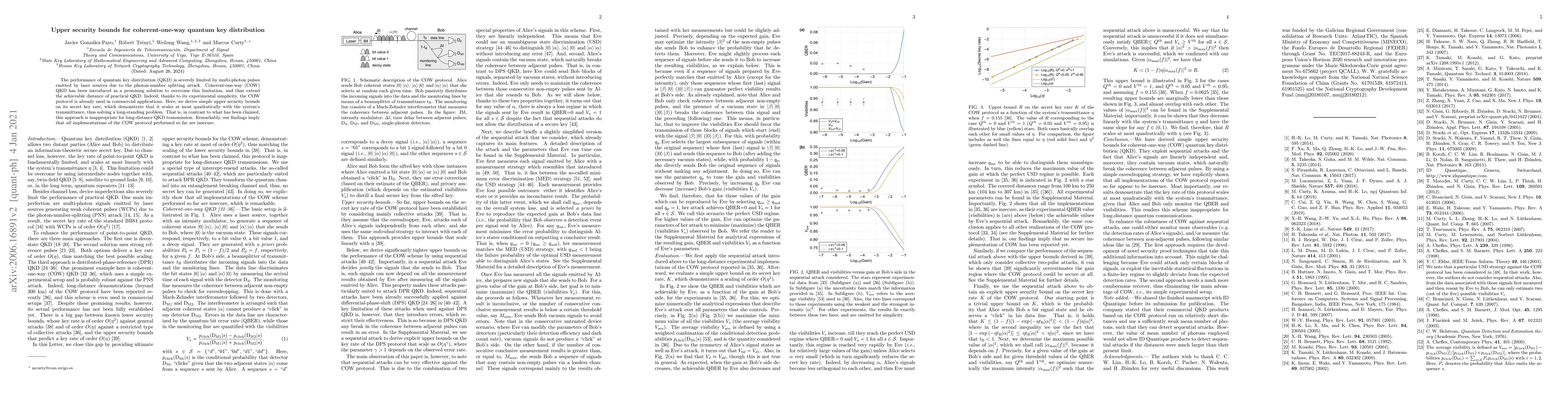 This paper derives upper security bounds for coherent-one-way quantum key distribution (COW QKD), showing that its secret key rate scales at most quadratically with transmittance, refuting claims of its suitability for long-distance QKD and indicating that past implementations are insecure.