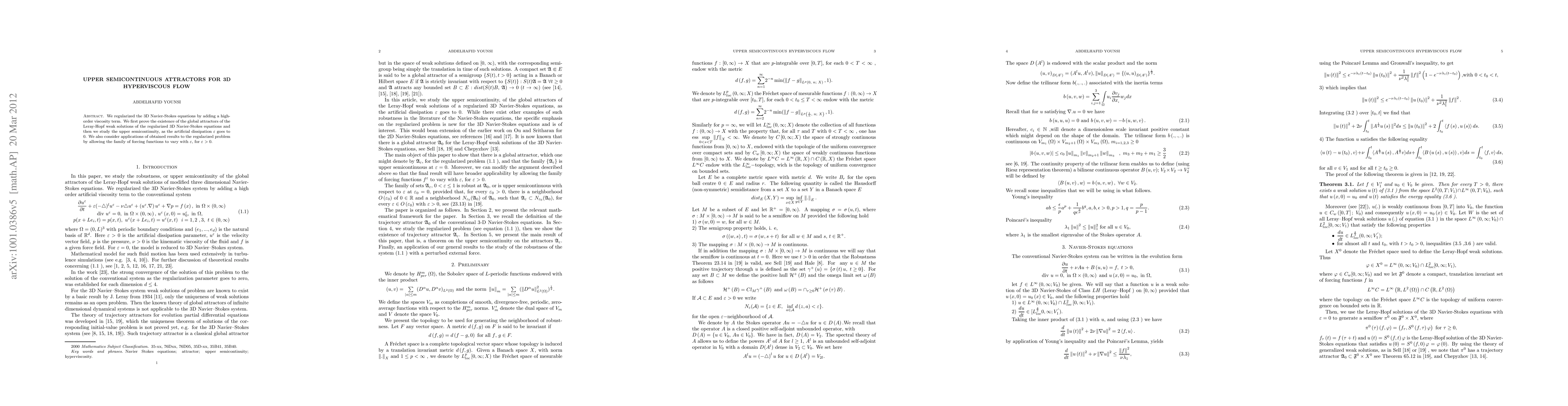 We regularized the 3D Navier-Stokes equations by adding a fourth-order viscosity term. We study the upper semicontinuity, of the global attractors of the Leray-Hopf weak solutions of the regularized 3D Navier-Stokes equations, as the artificial dissipation goes to 0. We also consider applications of obtained results to the regularized problem by allowing the family of forcing functions to vary with epsilon, for epsilon >0.