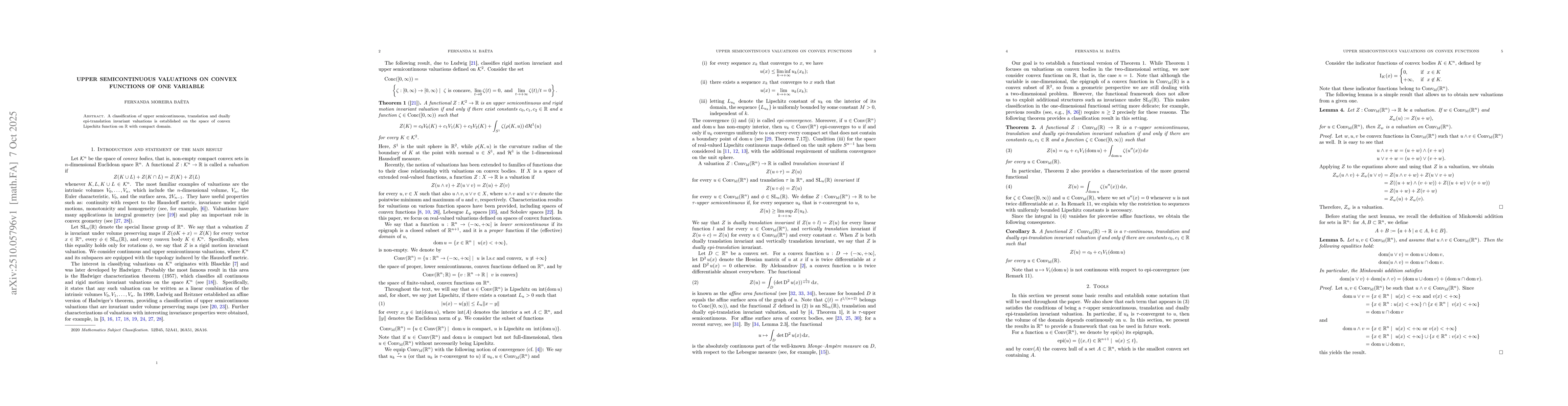 The research employs a combination of functional analysis, convex geometry, and variational methods to study upper semicontinuous valuations on convex functions. It leverages properties of concave functions, translation invariance, and decomposition theorems for valuations.