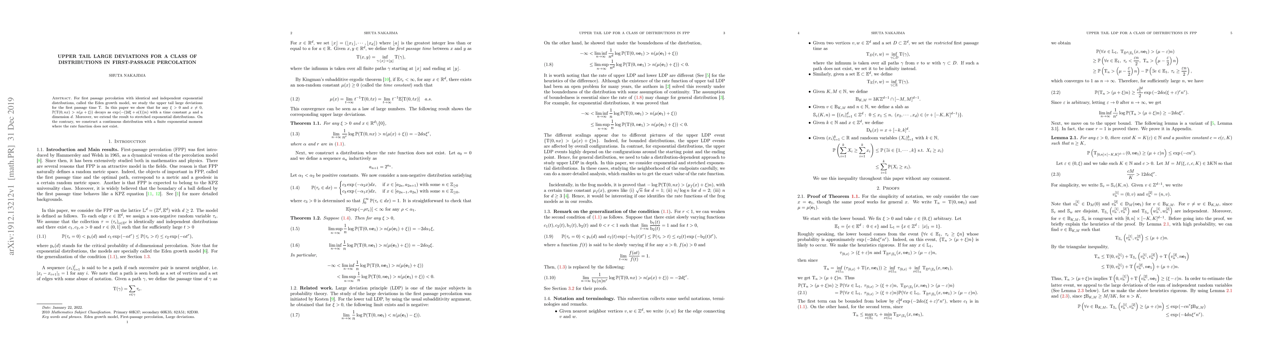 This paper investigates the upper tail large deviations for first passage times in the Eden growth model of first-passage percolation, showing exponential decay with a time constant and dimension-dependent rate. It also extends findings to stretched exponential distributions and demonstrates the absence of a rate function for certain continuous distributions.