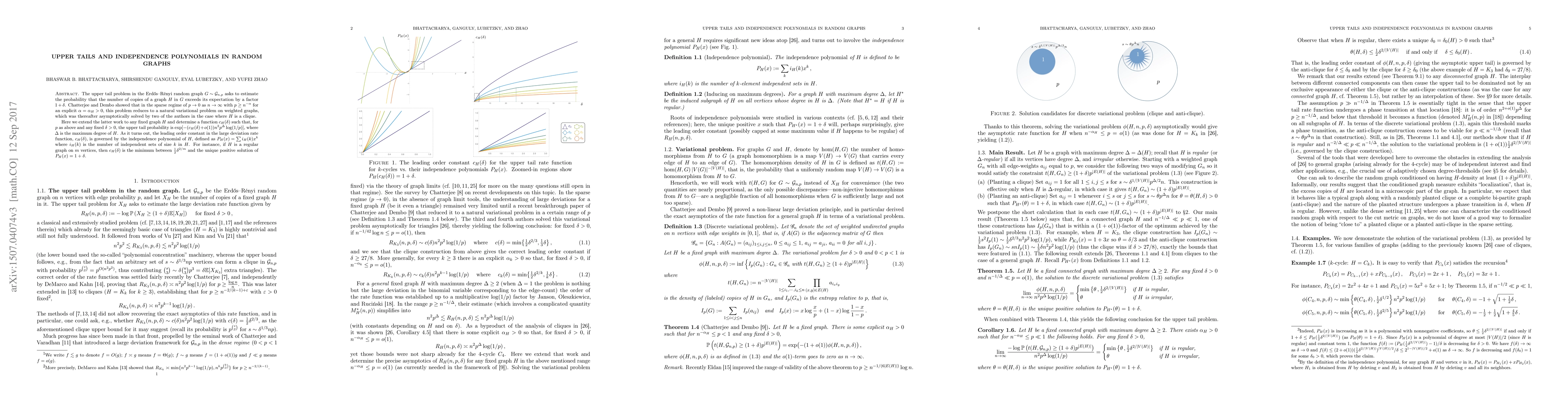 The upper tail problem in the Erd\H{o}s--R\'enyi random graph $G\sim\mathcal{G}_{n,p}$ asks to estimate the probability that the number of copies of a graph $H$ in $G$ exceeds its expectation by a factor $1+\delta$. Chatterjee and Dembo showed that in the sparse regime of $p\to 0$ as $n\to\infty$ with $p \geq n^{-\alpha}$ for an explicit $\alpha=\alpha_H>0$, this problem reduces to a natural variational problem on weighted graphs, which was thereafter asymptotically solved by two of the authors in the case where $H$ is a clique. Here we extend the latter work to any fixed graph $H$ and determine a function $c_H(\delta)$ such that, for $p$ as above and any fixed $\delta>0$, the upper tail probability is $\exp[-(c_H(\delta)+o(1))n^2 p^\Delta \log(1/p)]$, where $\Delta$ is the maximum degree of $H$. As it turns out, the leading order constant in the large deviation rate function, $c_H(\delta)$, is governed by the independence polynomial of $H$, defined as $P_H(x)=\sum i_H(k) x^k $ where $i_H(k)$ is the number of independent sets of size $k$ in $H$. For instance, if $H$ is a regular graph on $m$ vertices, then $c_H(\delta)$ is the minimum between $\frac12 \delta^{2/m}$ and the unique positive solution of $P_H(x) = 1+\delta$.