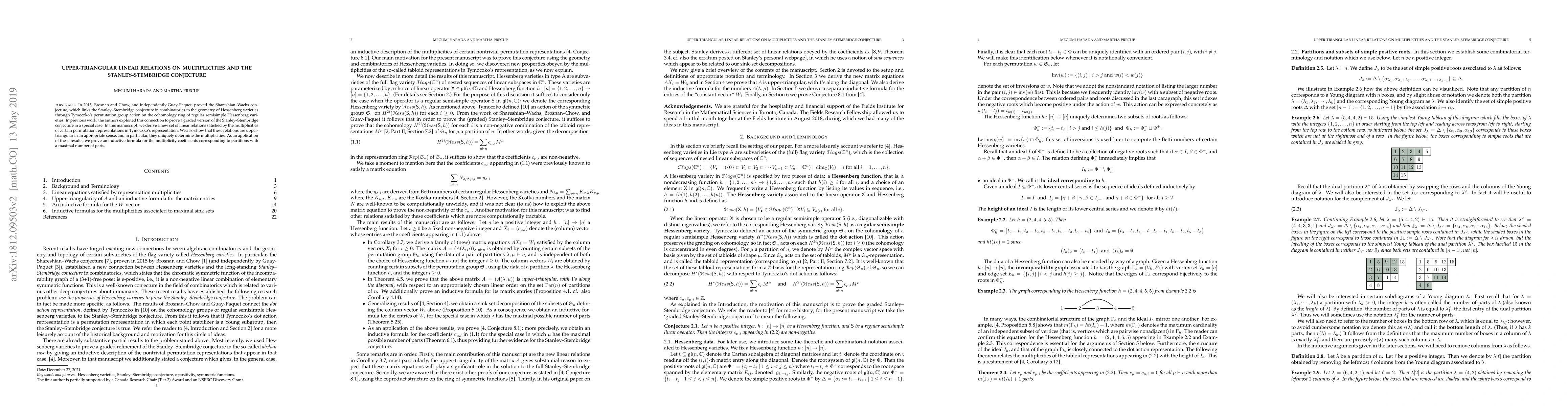 This paper establishes new upper-triangular linear relations for multiplicities in Tymoczko's permutation representations, proving a refined version of the Stanley-Stembridge conjecture and providing a non-negative inductive formula for multiplicity coefficients of partitions with maximal parts.