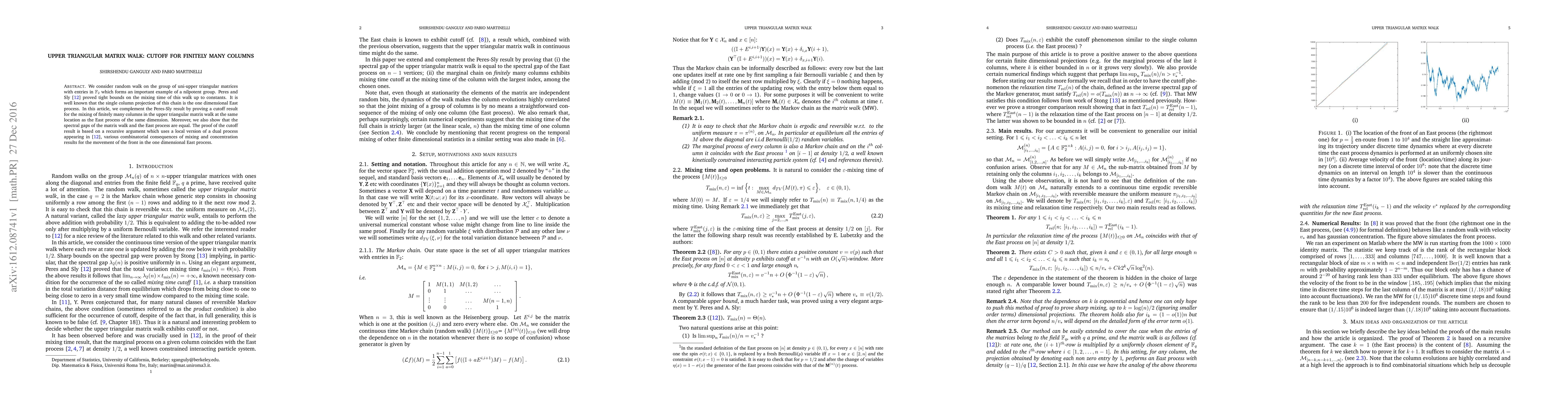 Researchers prove a cutoff result for mixing finitely many columns in an upper triangular matrix walk, matching its spectral gaps with the East process, providing insight into nilpotent groups and random walks on matrix spaces.