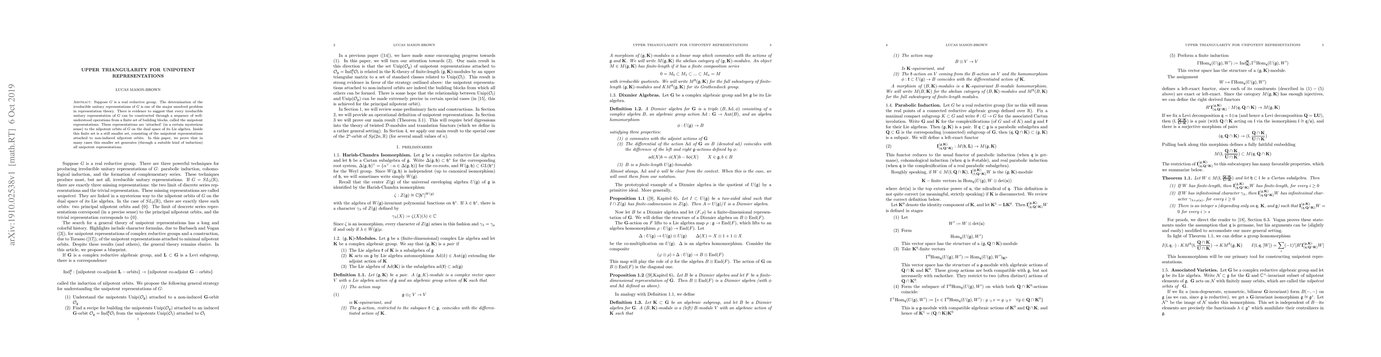 Suppose $G$ is a real reductive group. The determination of the irreducible unitary representations of $G$ is one of the major unsolved problem in representation theory. There is evidence to suggest that every irreducible unitary representation of $G$ can be constructed through a sequence of well-understood operations from a finite set of building blocks, called the unipotent representations. These representations are `attached' (in a certain mysterious sense) to the nilpotent orbits of $G$ on the dual space of its Lie algebra. Inside this finite set is a still smaller set, consisting of the unipotent representations attached to non-induced nilpotent orbits. In this paper, we prove that in many cases this smaller set generates (through a suitable kind of induction) all unipotent representations.