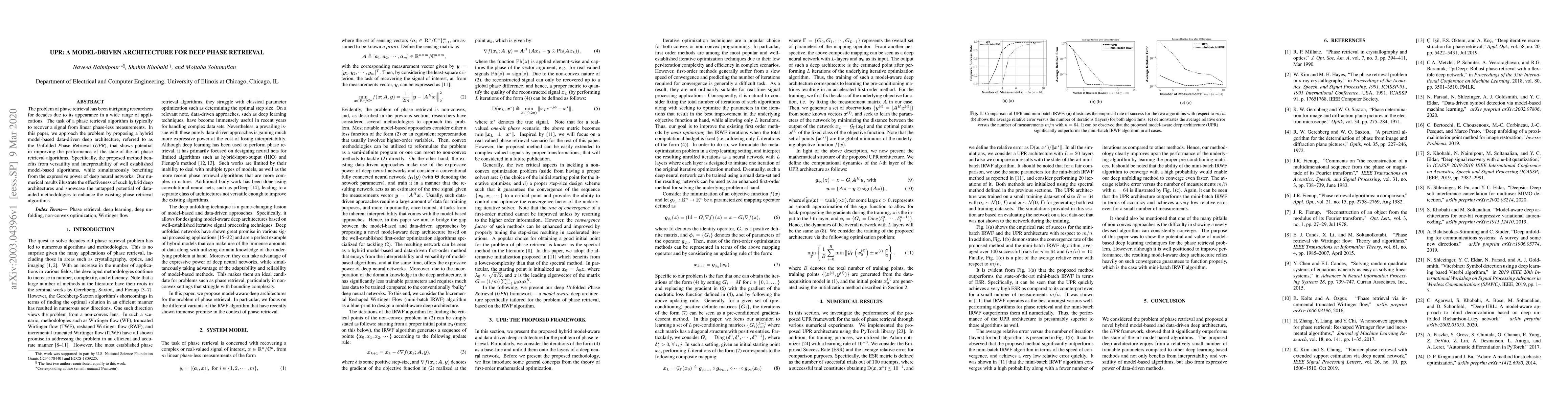 The paper proposes UPR, a hybrid model-driven deep architecture for phase retrieval, combining the strengths of model-based algorithms and deep neural networks to improve performance. Numerical results demonstrate the effectiveness of this approach in enhancing existing phase retrieval methods.