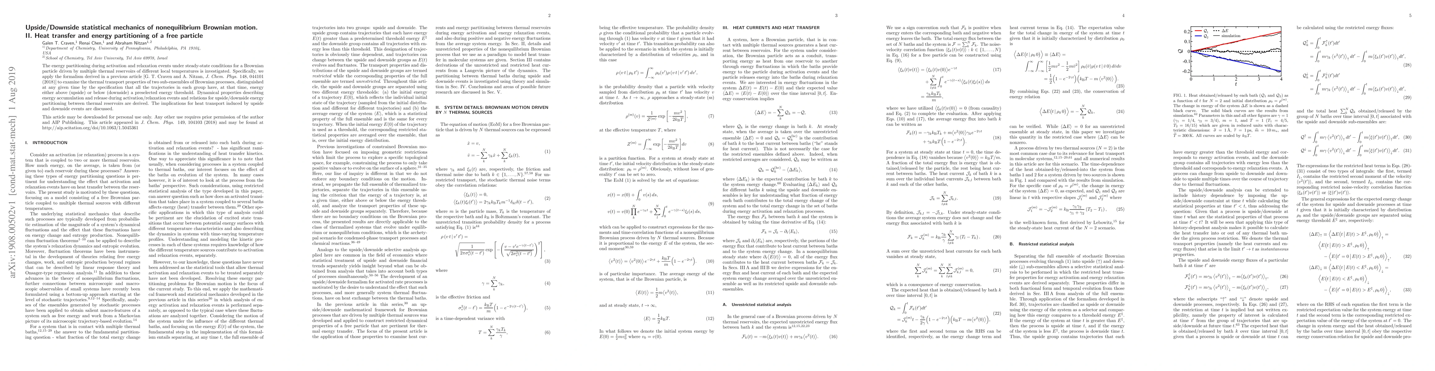 The energy partitioning during activation and relaxation events under steady-state conditions for a Brownian particle driven by multiple thermal reservoirs of different local temperatures is investigated. Specifically, we apply the formalism derived in a previous article [G. T. Craven and A. Nitzan, J. Chem. Phys. 148, 044101 (2018)] to examine the thermal transport properties of two sub-ensembles of Brownian processes, distinguished at any given time by the specification that all the trajectories in each group have, at that time, energy either above (upside) or below (downside) a preselected energy threshold. Dynamical properties describing energy accumulation and release during activation/relaxation events and relations for upside/downside energy partitioning between thermal reservoirs are derived. The implications for heat transport induced by upside and downside events are discussed.