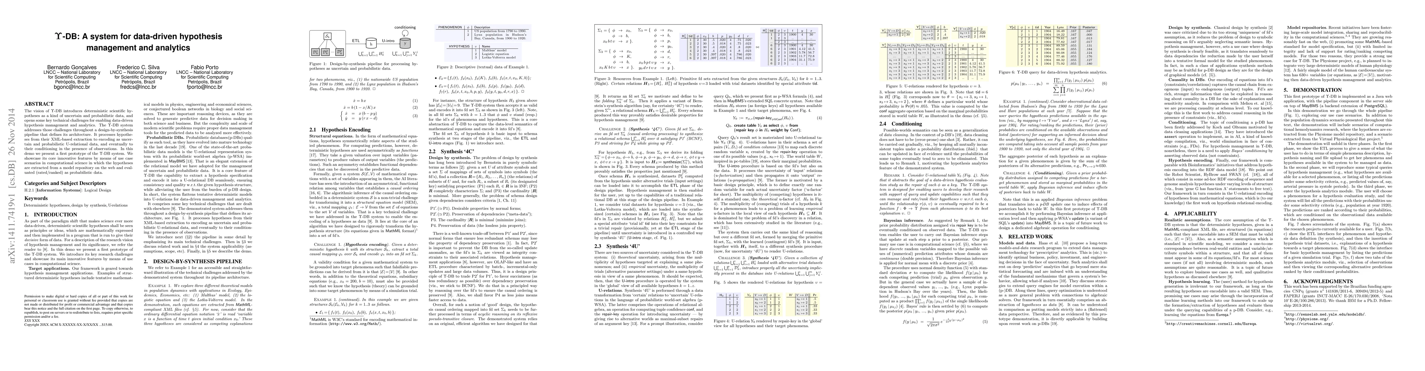 The $Upsilon$-DB system manages hypotheses as probabilistic data, transforming them from XML to U-relational format for evaluation. A prototype demonstrates its use in computational science, extracting and ranking hypotheses from web-based model repositories.