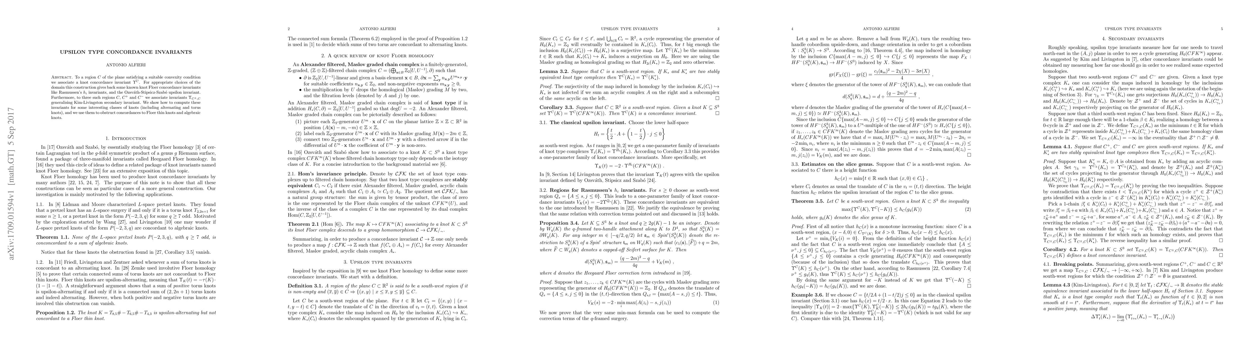 This paper introduces Upsilon type concordance invariants associated with convex regions in the plane, showing connections to known knot Floer concordance invariants and generalizing the Kim-Livingston secondary invariant. It also demonstrates their applicability in distinguishing various knot classes and identifying obstructions to concordances to Floer thin and algebraic knots.
