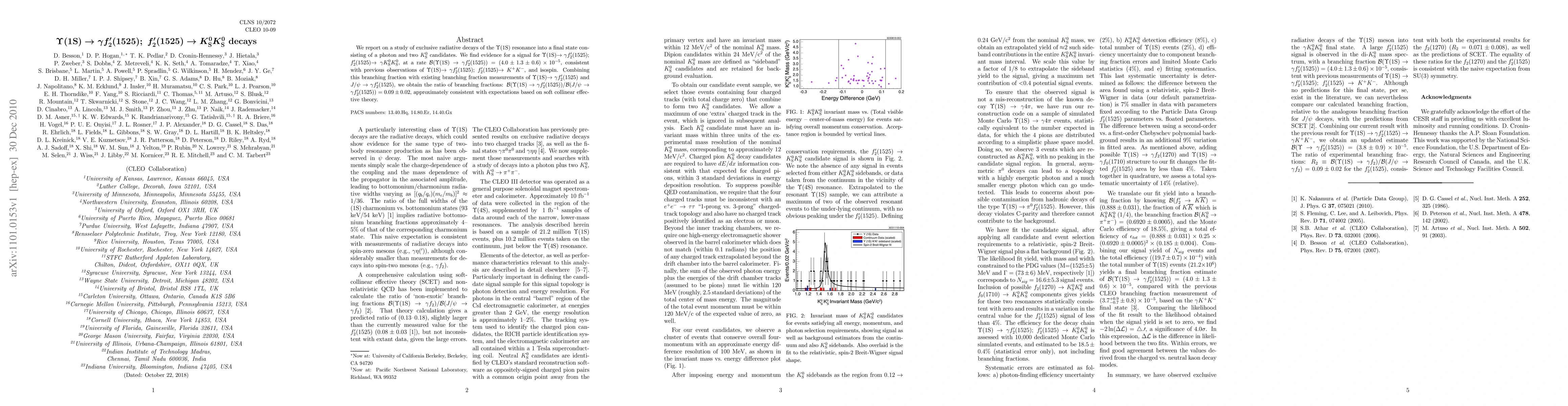 The research used a combination of experimental and theoretical methods to study the decay of the Υ(1S) meson into the γK0SK0S final state.