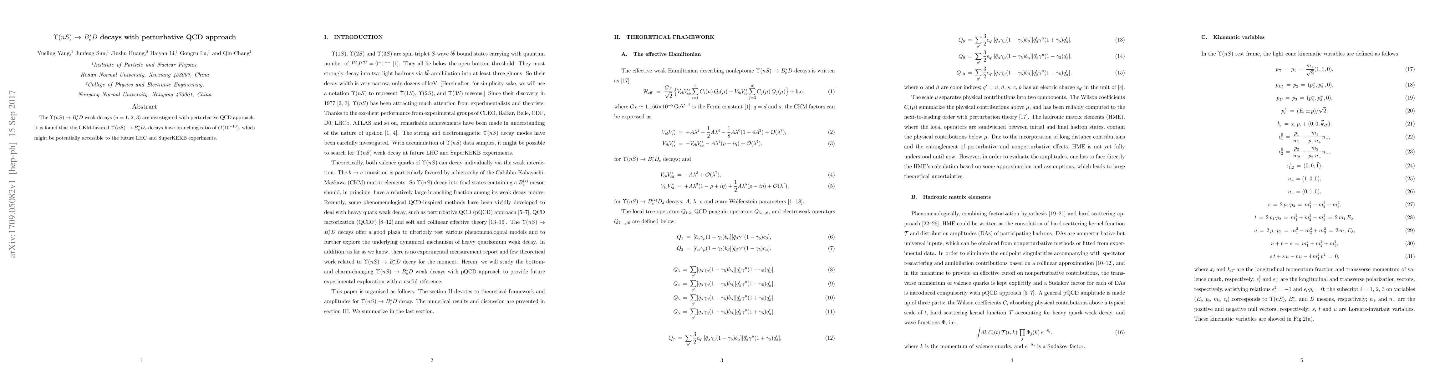 The ${\Upsilon}(nS)$ ${\to}$ $B_{c}^{\ast}D$ weak decays ($n$ $=$ $1$, $2$, $3$) are investigated with perturbative QCD approach. It is found that the CKM-favored ${\Upsilon}(nS)$ ${\to}$ $B_{c}^{\ast}D_{s}$ decays have branching ratio of ${\cal O}(10^{-10})$, which might be potentially accessible to the future LHC and SuperKEKB experiments.