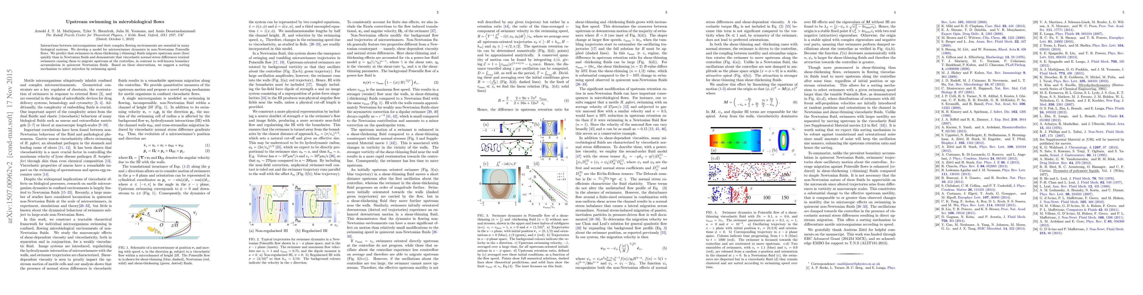 Researchers developed a model to study microswimmers in non-Newtonian fluids, finding that swimmers migrate upstream faster than expected due to viscoelastic forces, potentially creating a new sorting mechanism for microbes.