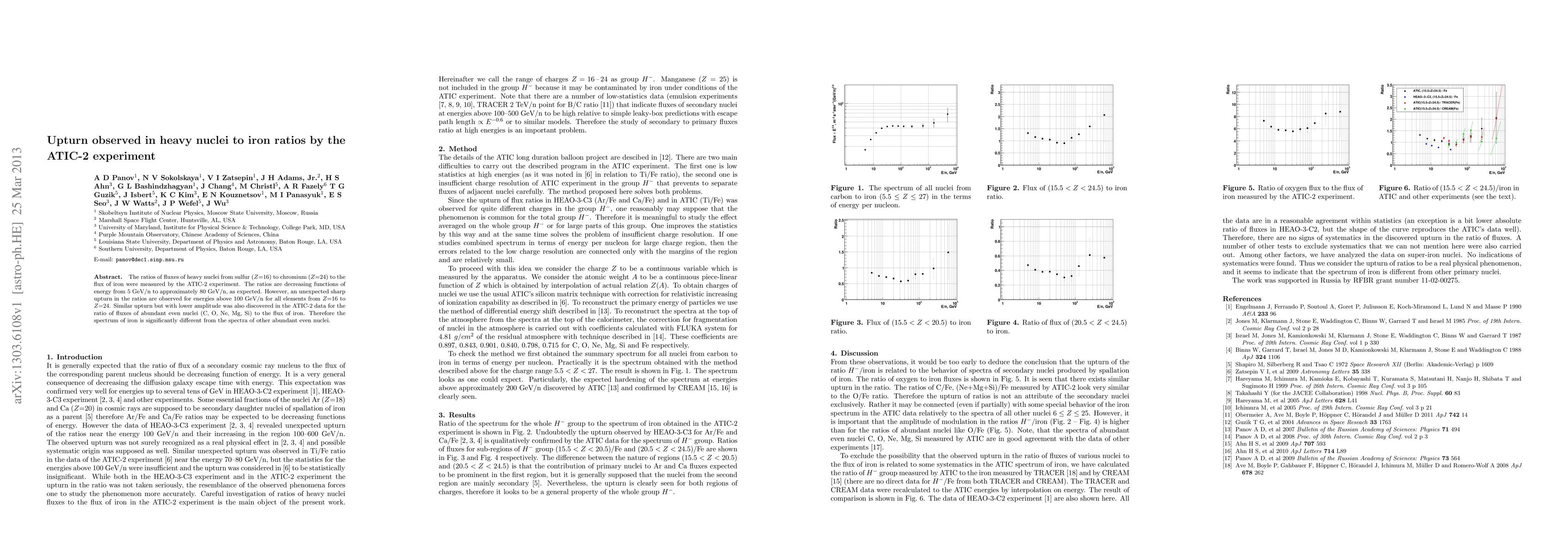 The ATIC-2 experiment detected a sharp upturn in the ratios of heavy nuclei fluxes from sulfur to chromium relative to iron above 100 GeV/n, contrary to the expected decreasing trend. This anomaly also applies to ratios of lighter even nuclei, indicating a distinct spectral behavior for iron compared to other abundant nuclei.