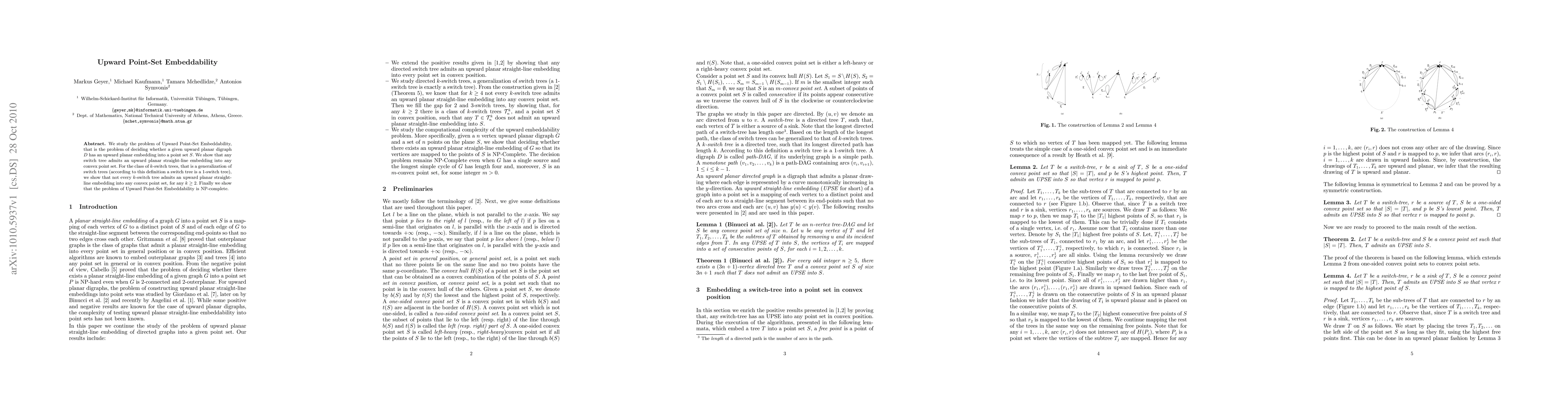 This paper investigates the Upward Point-Set Embeddability problem, determining if a given upward planar digraph can be embedded into a convex point set. It proves that switch trees can always be embedded, but not all k-switch trees (for k ≥ 2) can, and concludes that the problem is NP-complete.