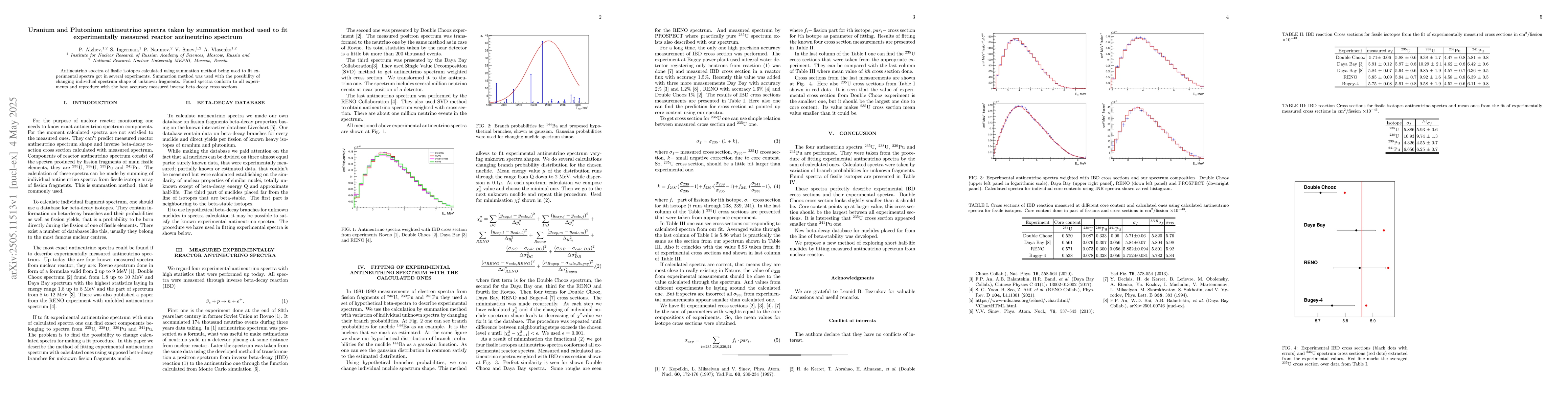 The research utilized the summation method to calculate antineutrino spectra of fissile isotopes Uranium and Plutonium, allowing for adjustments to individual spectrum shapes of unknown fragments.