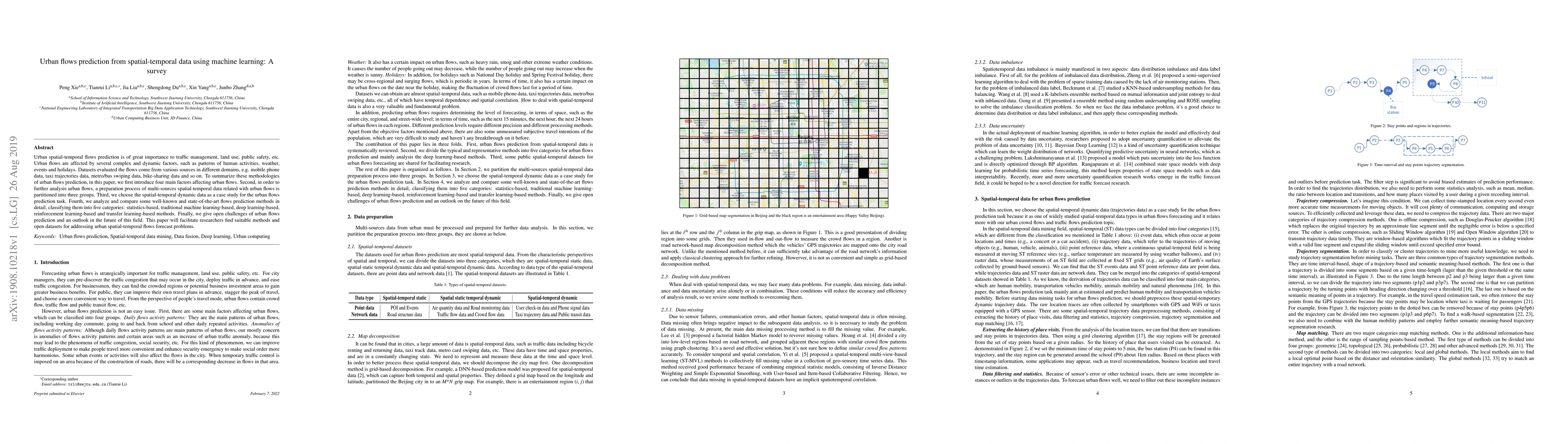 This paper surveys methodologies for predicting urban spatial-temporal flows using machine learning, categorizing methods into statistics-based, traditional machine learning, deep learning, reinforcement learning, and transfer learning. It highlights challenges and future directions in this field.