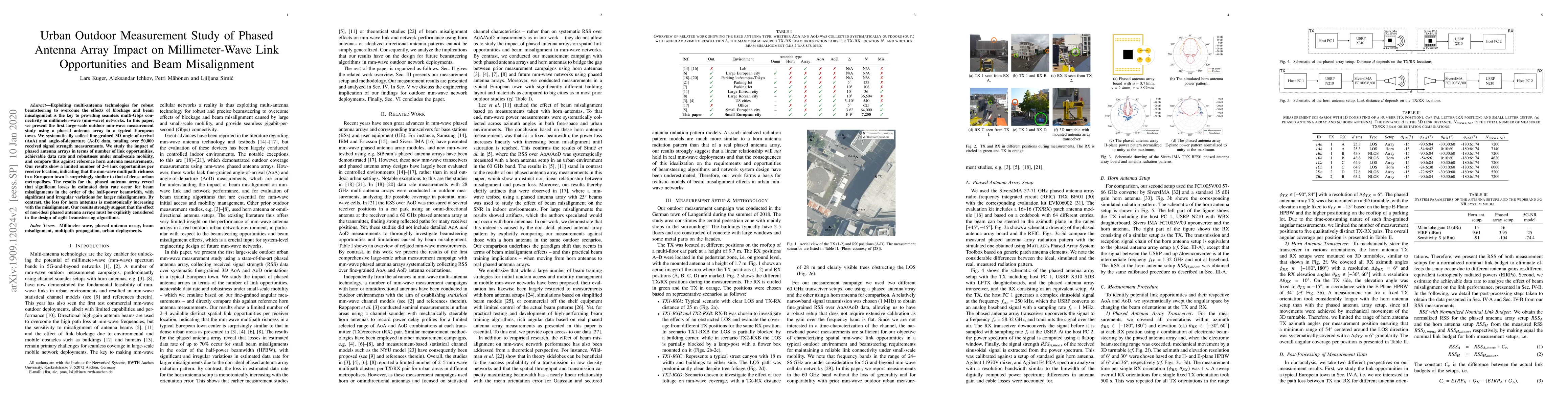 Exploiting multi-antenna technologies for robust beamsteering to overcome the effects of blockage and beam misalignment is the key to providing seamless multi-Gbps connectivity in millimeter-wave (mm-wave) networks. In this paper, we present the first large-scale outdoor mm-wave measurement study using a phased antenna array in a typical European town. We systematically collect fine-grained 3D angle-of-arrival (AoA) and angle-of-departure (AoD) data, totaling over 50,000 received signal strength measurements. We study the impact of phased antenna arrays in terms of number of link opportunities, achievable data rate and robustness under small-scale mobility, and compare this against reference horn antenna measurements. Our results show a limited number of 2--4 link opportunities per receiver location, indicating that the mm-wave multipath richness in a European town is surprisingly similar to that of dense urban metropolises. The results for the phased antenna array reveal that significant losses in estimated data rate occur for beam misalignments in the order of the half-power beamwidth, with significant and irregular variations for larger misalignments. By contrast, the loss for horn antennas is monotonically increasing with the misalignment. Our results strongly suggest that the effect of non-ideal phased antenna arrays must be explicitly considered in the design of agile beamsteering algorithms.