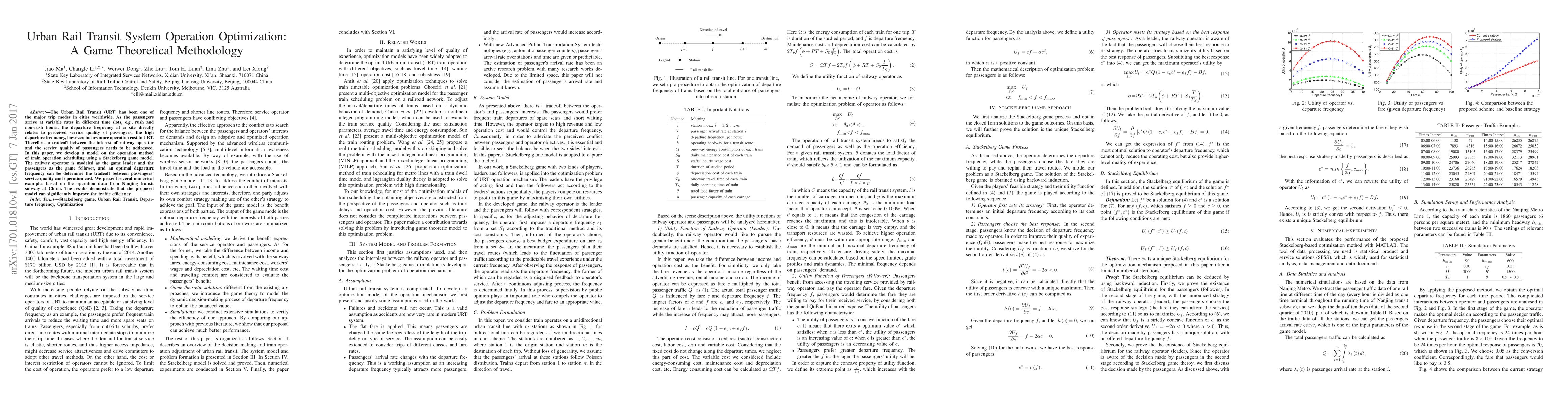 This paper proposes a Stackelberg game model to optimize the operation of urban rail transit systems by balancing passenger service quality and operational costs. The railway operator leads while passengers follow, determining an optimal departure frequency to enhance traffic efficiency, as demonstrated by data from Nanjing transit subway.