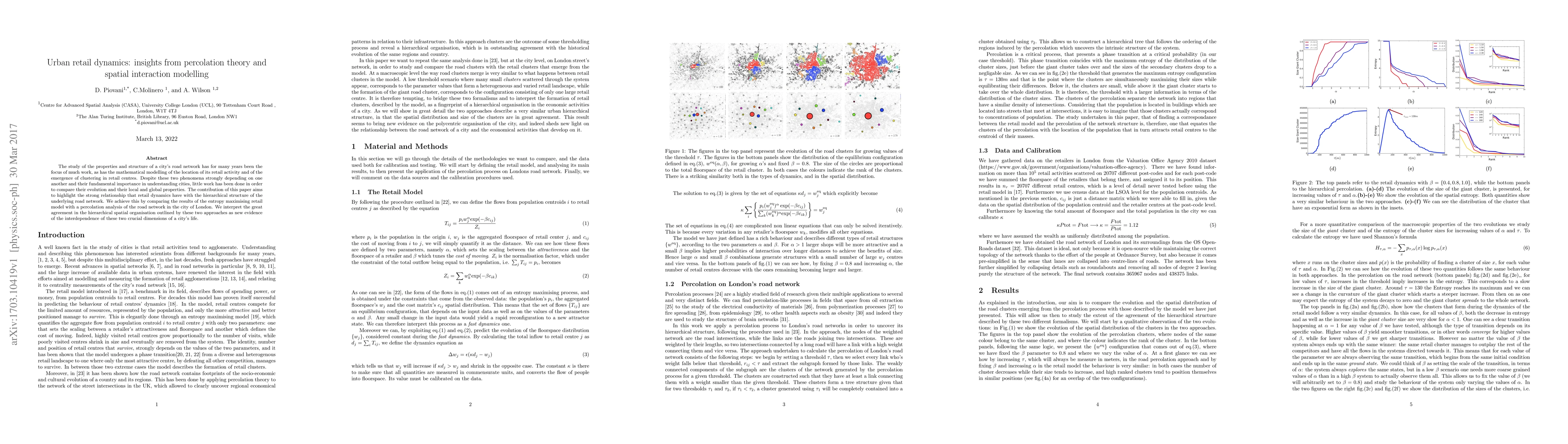 The study of the properties and structure of a city's road network has for many years been the focus of much work, as has the mathematical modelling of the location of its retail activity and of the emergence of clustering in retail centres. Despite these two phenomena strongly depending on one another and their fundamental importance in understanding cities, little work has been done in order to compare their evolution and their local and global properties. The contribution of this paper aims to highlight the strong relationship that retail dynamics have with the hierarchical structure of the underlying road network. We achieve this by comparing the results of the entropy maximising retail model with a percolation analysis of the road network in the city of London. We interpret the great agreement in the hierarchical spatial organisation outlined by these two approaches as new evidence of the interdependence of these two crucial dimensions of a city's life.