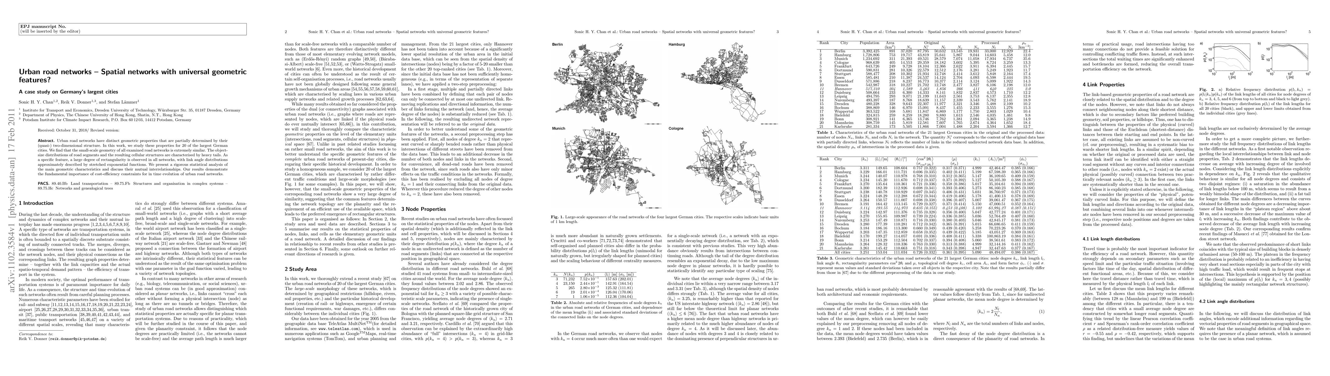 Urban road networks have distinct geometric properties that are partially determined by their (quasi-) two-dimensional structure. In this work, we study these properties for 20 of the largest German cities. We find that the small-scale geometry of all examined road networks is extremely similar. The object-size distributions of road segments and the resulting cellular structures are characterised by heavy tails. As a specific feature, a large degree of rectangularity is observed in all networks, with link angle distributions approximately described by stretched exponential functions. We present a rigorous statistical analysis of the main geometric characteristics and discuss their mutual interrelationships. Our results demonstrate the fundamental importance of cost-efficiency constraints for in time evolution of urban road networks.