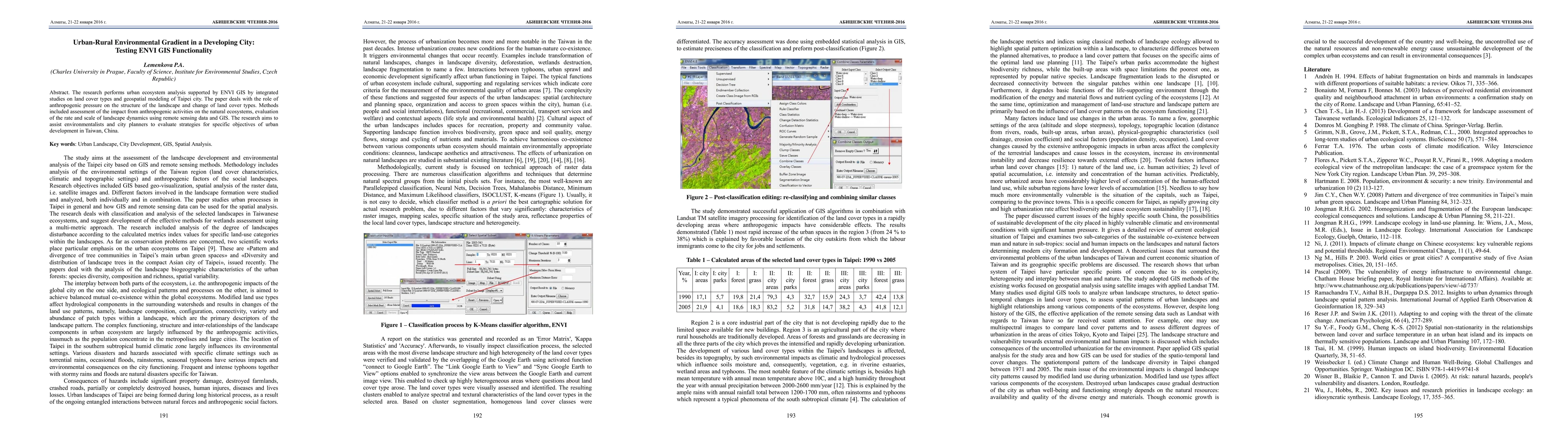 This study uses ENVI GIS to analyze Taipei city's urban ecosystem, focusing on land cover changes driven by anthropogenic pressure and landscape dynamics. The research aims to provide insights for urban development strategies in Taiwan, China.
