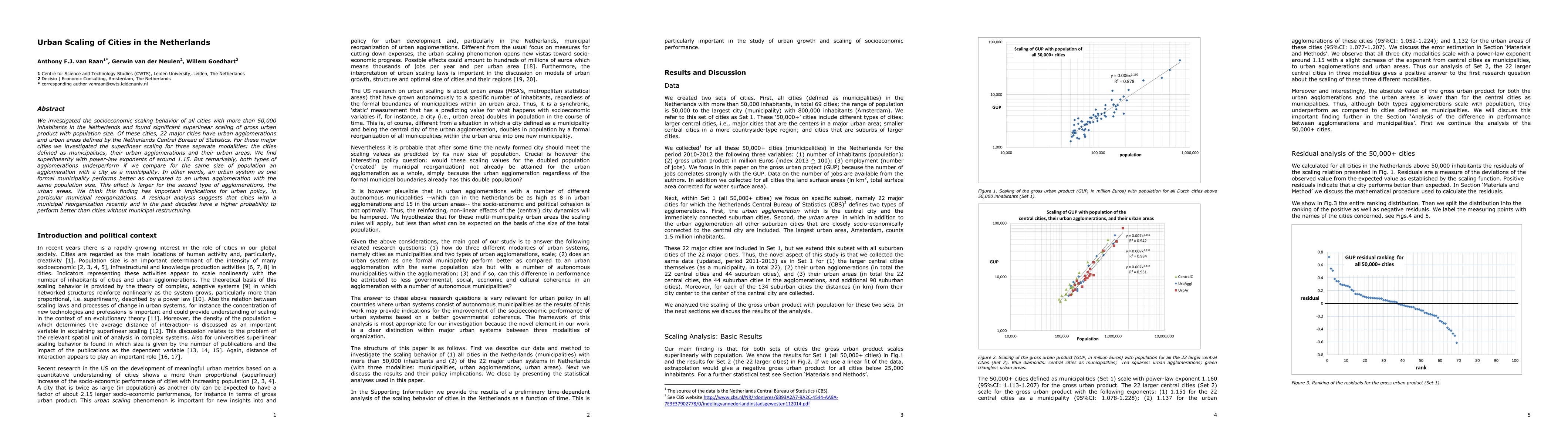 This study reveals significant superlinear scaling of the gross urban product in Dutch cities with more than 50,000 inhabitants, with power-law exponents around 1.15. Notably, formal municipalities outperform urban agglomerations, suggesting important implications for urban policy and municipal reorganization.
