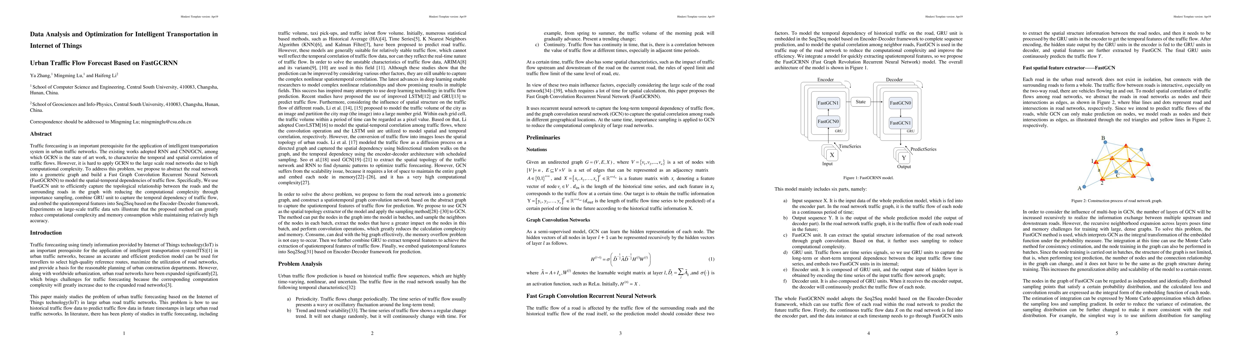 A new traffic flow forecasting method called FastGCRNN reduces computational complexity while maintaining high accuracy for urban traffic networks. It uses a graph-based approach to capture spatial-temporal dependencies.