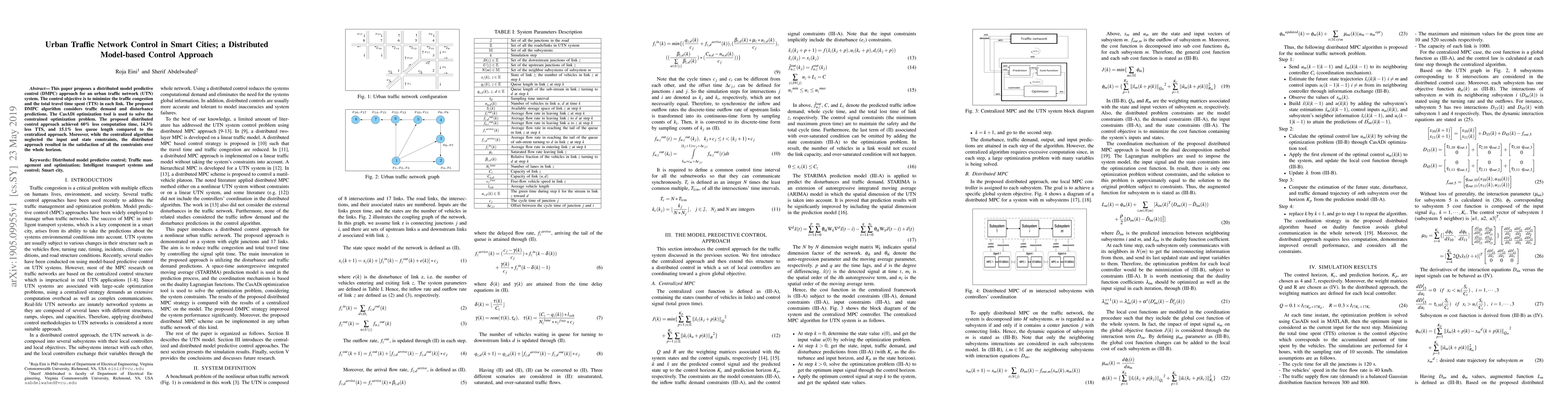 This paper introduces a distributed model predictive control (DMPC) method for managing urban traffic networks, achieving a 60% reduction in computation time and 14.3% decrease in total travel time spent compared to centralized control, while also satisfying all input and state constraints.