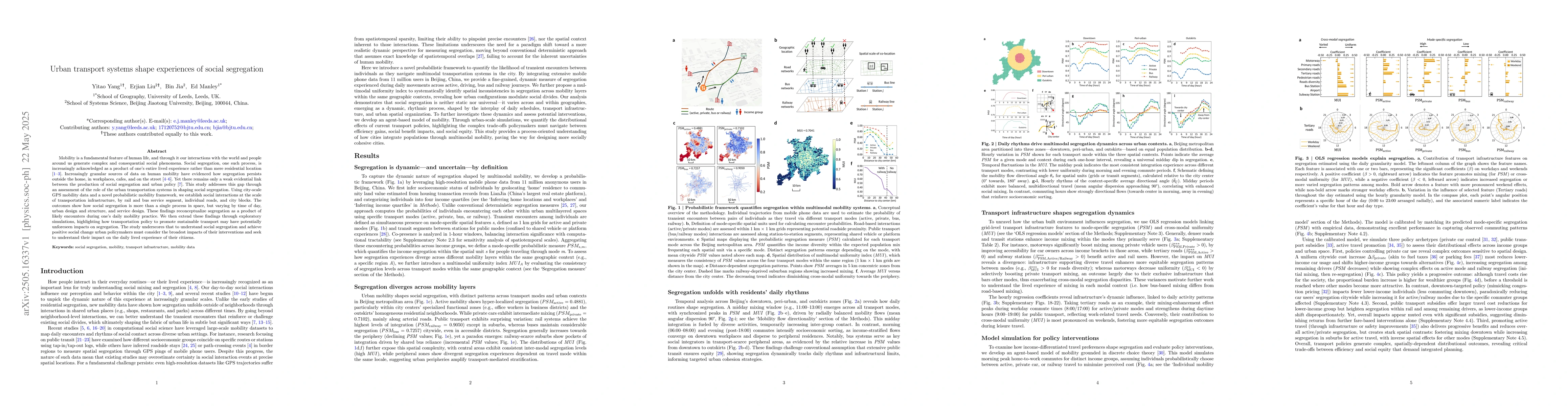 This work differs from existing research by explicitly linking urban transport systems to social segregation experiences, rather than focusing solely on residential location, and by considering the temporal and spatial variability of segregation.
