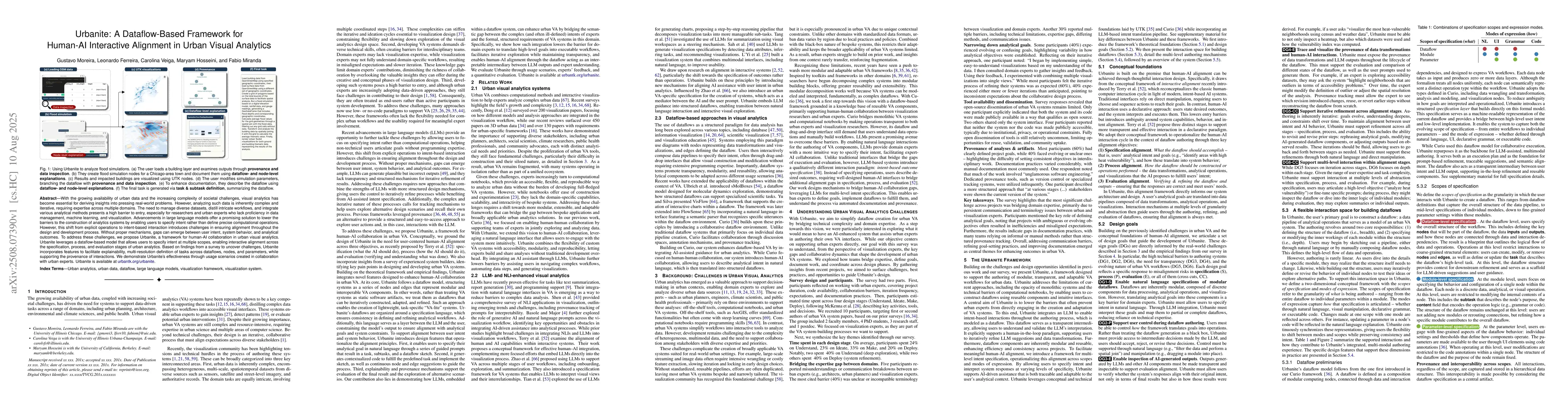 Urbanite presents a dataflow-based model for human-AI collaboration, incorporating an LLM for intent-based interaction and ensuring alignment across specification, process, and evaluation stages of urban analytics.