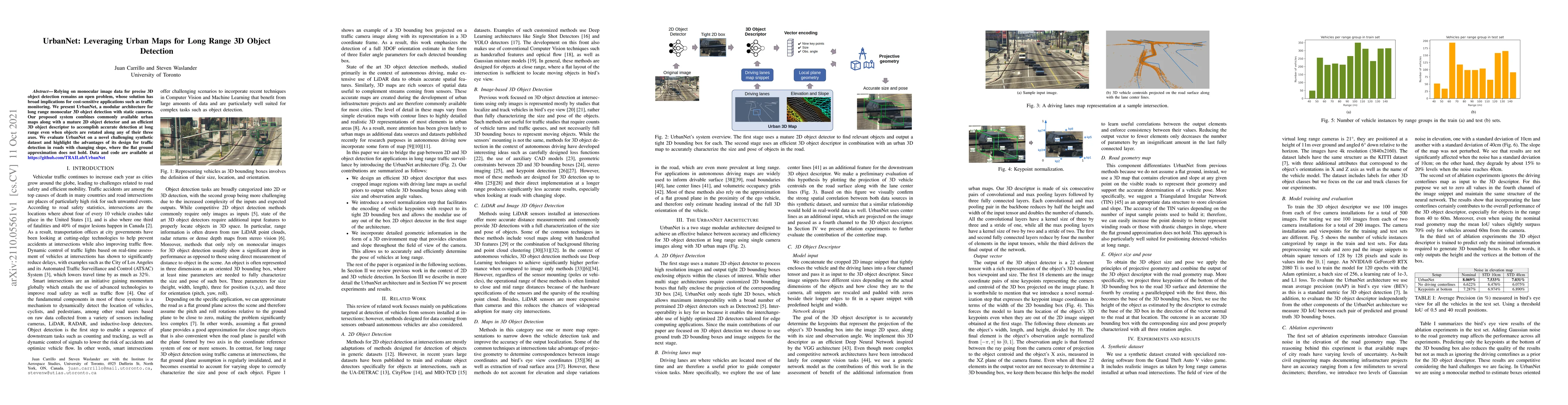 UrbanNet is a modular architecture for long-range monocular 3D object detection using urban maps and a 2D object detector. It achieves accurate detection even with object rotations, evaluated on a synthetic dataset, and is useful for traffic monitoring on roads with varying slopes.