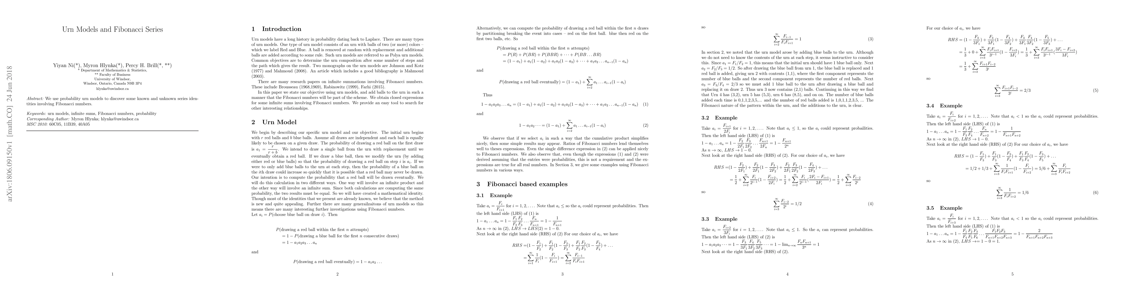 We use probability urn models to discover some known and unknown series identities involving Fibonacci numbers.