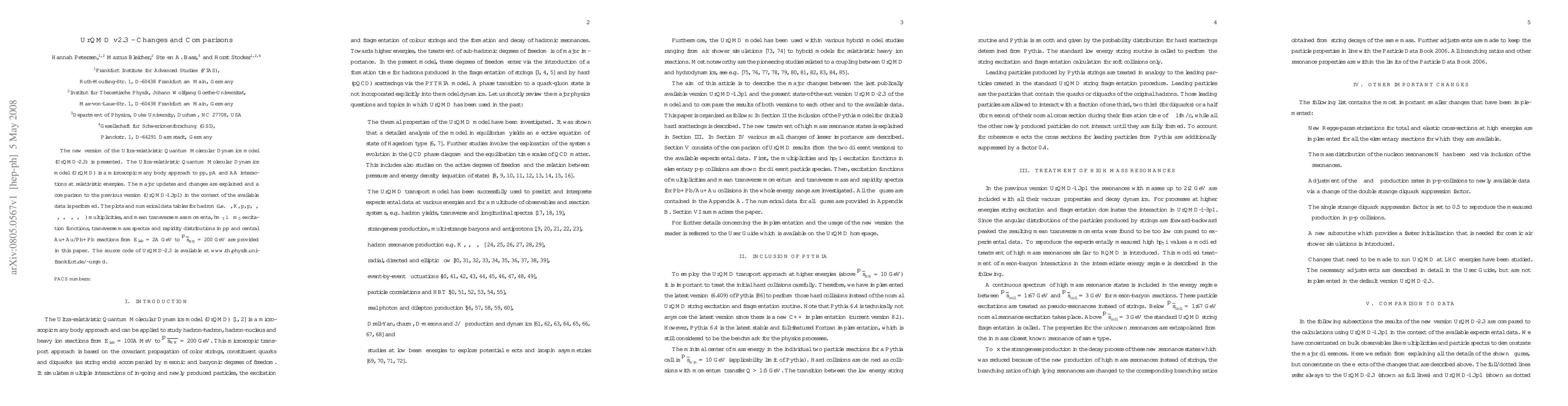 (UrQMD-2.3) is presented. The Ultra-relativistic Quantum Molecular Dynamics