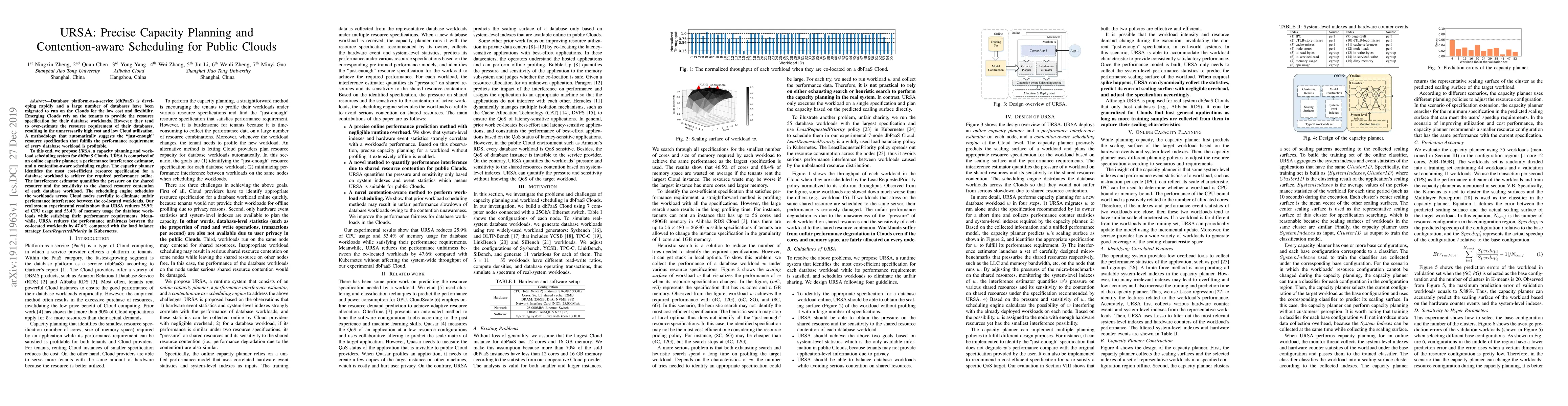 URSA is a system for precise capacity planning and contention-aware scheduling in dbPaaS Clouds, aiming to reduce unnecessary resource allocation and improve performance fairness. It achieves this through an online capacity planner, a performance interference estimator, and a contention-aware scheduling engine, resulting in significant reductions in resource usage and performance interference.