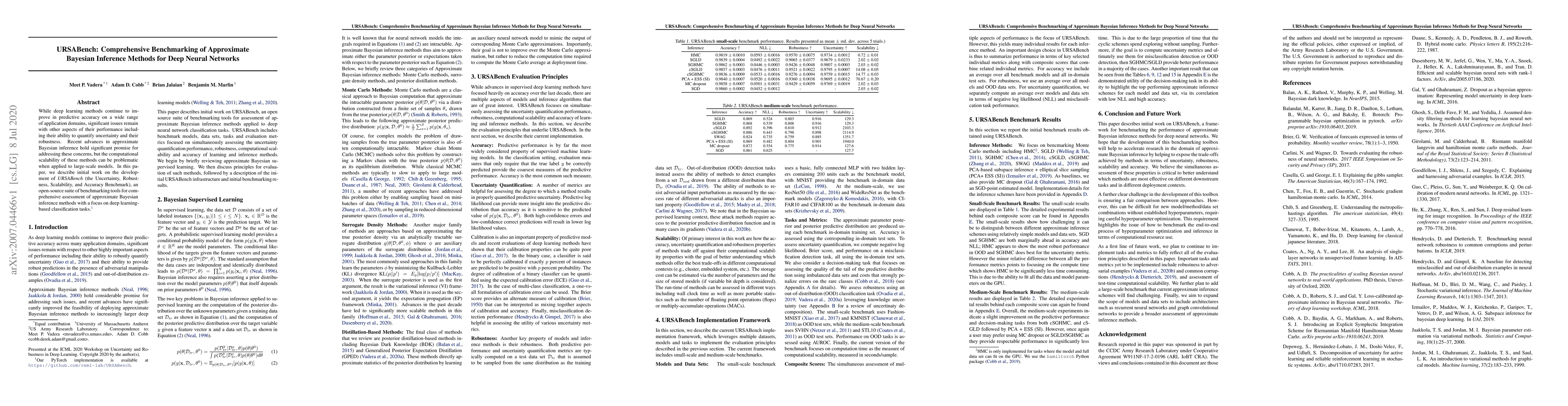 URSABench is an open-source benchmarking suite designed to evaluate the scalability, robustness, and accuracy of approximate Bayesian inference methods for deep neural networks. It aims to address the challenges of uncertainty quantification and model robustness in deep learning.