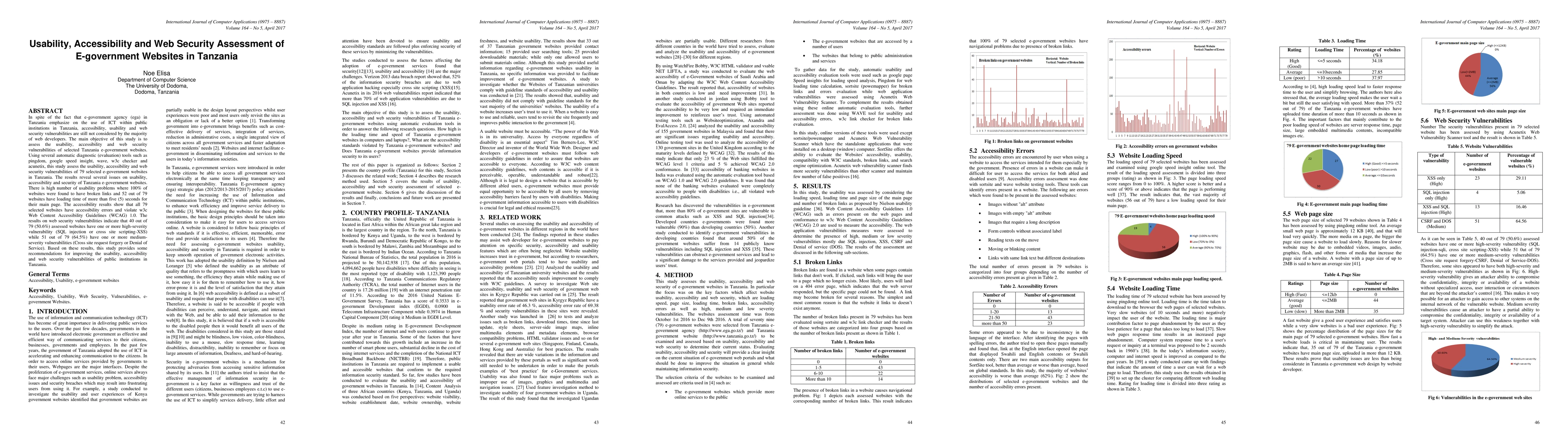 This study evaluates the usability, accessibility, and web security of Tanzania's e-government websites using various diagnostic tools. It finds significant issues, including broken links, slow loading times, accessibility violations, and high-severity security vulnerabilities, suggesting urgent improvements are needed.