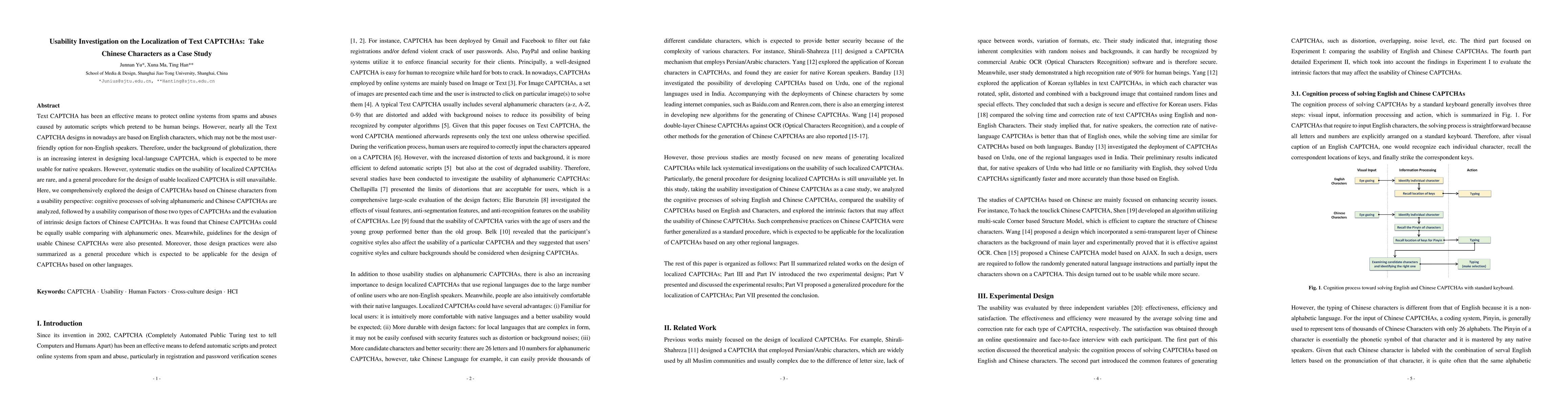 Text CAPTCHA has been an effective means to protect online systems from spams and abuses caused by automatic scripts which pretend to be human beings. However, nearly all the Text CAPTCHA designs in nowadays are based on English characters, which may not be the most user-friendly option for non-English speakers. Therefore, under the background of globalization, there is an increasing interest in designing local-language CAPTCHA, which is expected to be more usable for native speakers. However, systematic studies on the usability of localized CAPTCHAs are rare, and a general procedure for the design of usable localized CAPTCHA is still unavailable. Here, we comprehensively explored the design of CAPTCHAs based on Chinese characters from a usability perspective: cognitive processes of solving alphanumeric and Chinese CAPTCHAs are analyzed, followed by a usability comparison of those two types of CAPTCHAs and the evaluation of intrinsic design factors of Chinese CAPTCHAs. It was found that Chinese CAPTCHAs could be equally usable comparing with alphanumeric ones. Meanwhile, guidelines for the design of usable Chinese CAPTCHAs were also presented. Moreover, those design practices were also summarized as a general procedure which is expected to be applicable for the design of CAPTCHAs based on other languages.