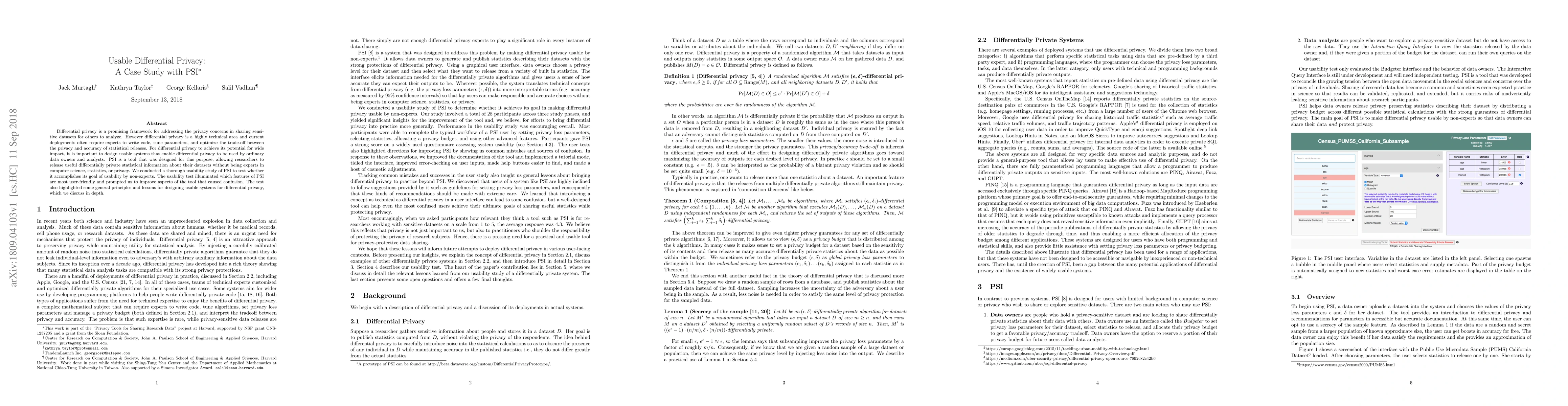 This paper explores the usability of PSI, a tool designed to facilitate differential privacy for non-experts, through a comprehensive usability study. The findings reveal successful features and areas needing improvement, offering insights for designing accessible privacy systems.