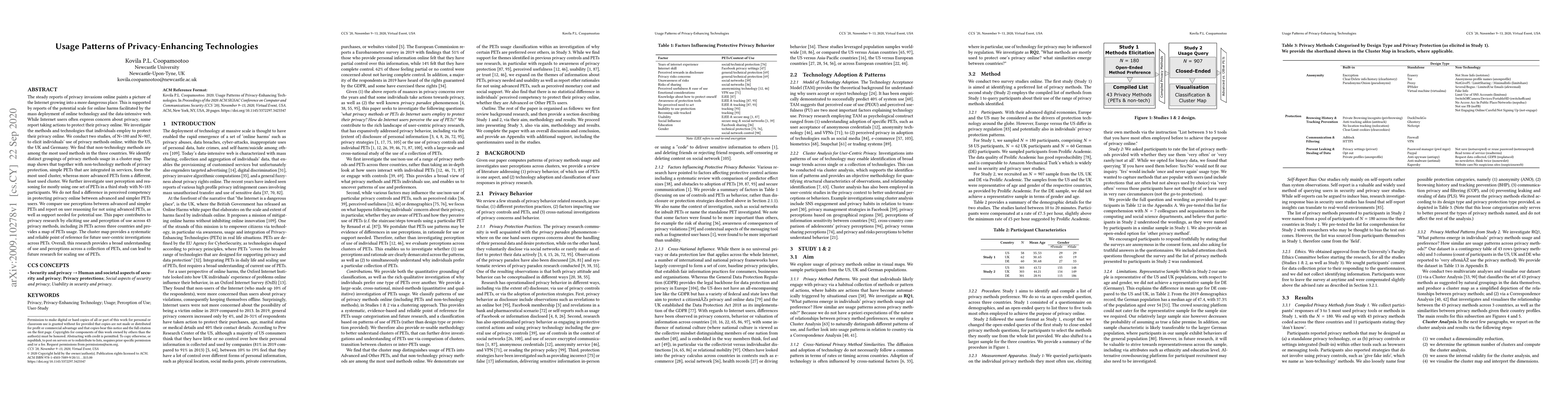 A study found that individuals in the US, UK, and Germany use a mix of simple and advanced online privacy technologies (PETs) to protect their data, with non-technology methods being among the most used. The research provides insights into user perceptions and reasoning for using certain PETs or not.