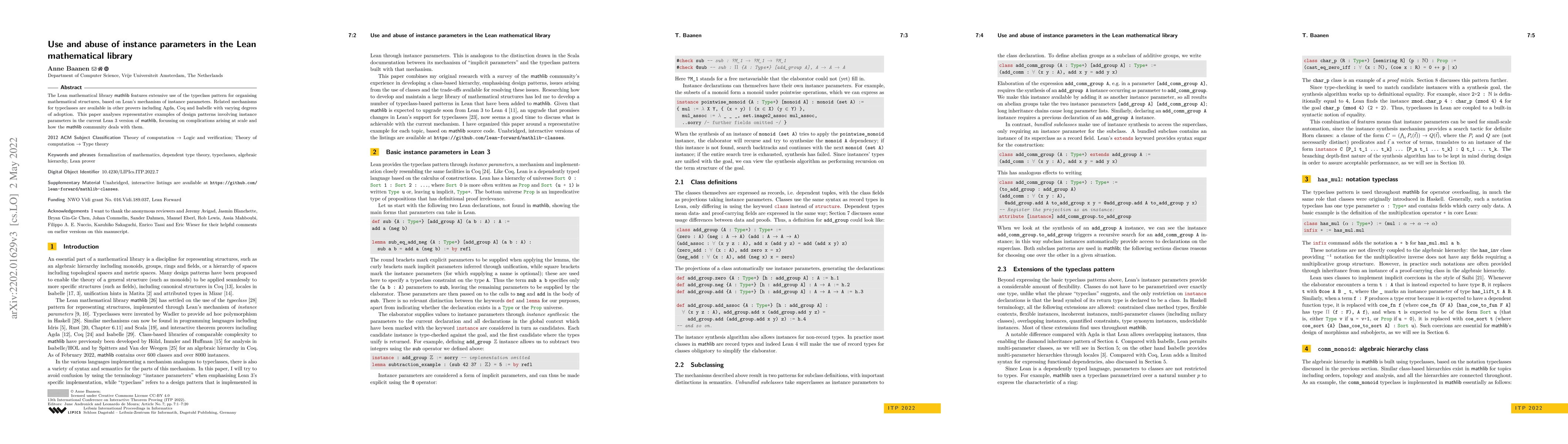 The Lean mathematical library mathlib features extensive use of the typeclass pattern for organising mathematical structures, based on Lean's mechanism of instance parameters. Related mechanisms for typeclasses are available in other provers including Agda, Coq and Isabelle with varying degrees of adoption. This paper analyses representative examples of design patterns involving instance parameters in the current Lean 3 version of mathlib, focussing on complications arising at scale and how the mathlib community deals with them.