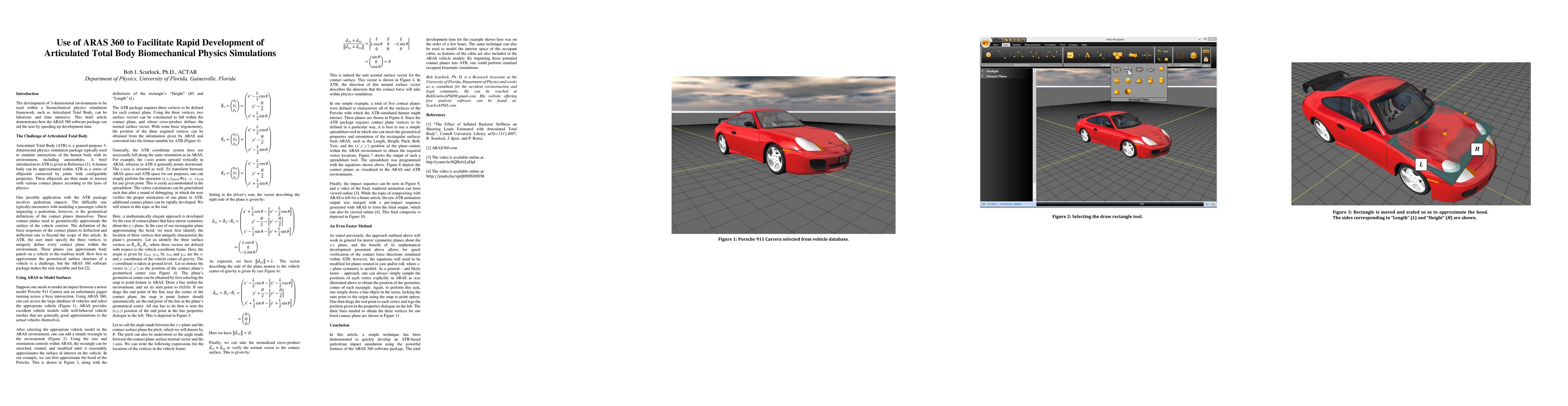 The development of 3-dimensional environments to be used within a biomechanical physics simulation framework, such as Articulated Total Body, can be laborious and time intensive. This brief article demonstrates how the ARAS 360 software package can aid the user by speeding up development time.