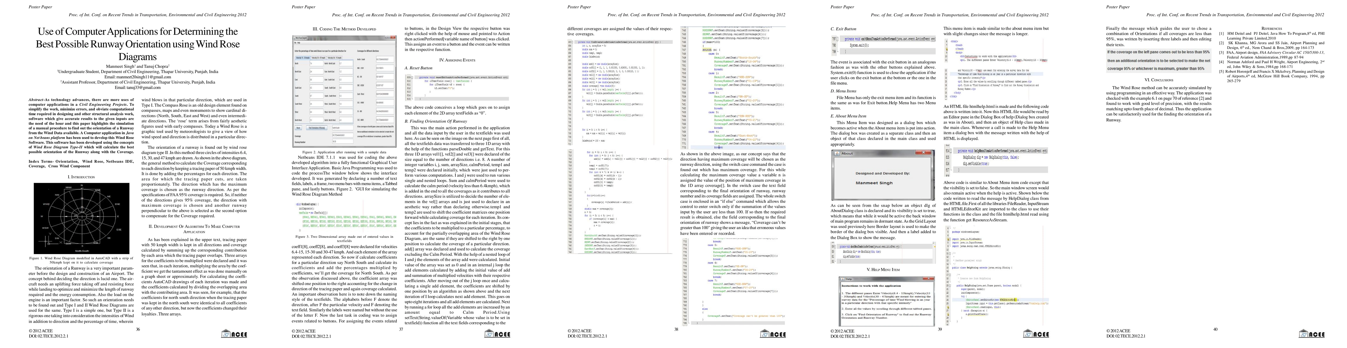As technology advances, there are more uses of computer applications in a Civil Engineering Projects. To simplify the work, minimize errors, and obviate computational time required in designing and other structural analysis work, software which give accurate results to the given inputs are the need of the hour and this paper highlights the simulation of a manual procedure to find out the orientation of a Runway from the Wind Data available. A Computer application in Java on Net beans platform has been used to develop this Wind Rose Software. This software has been developed using the concepts of Wind Rose Diagram Type-II which will calculate the best possible orientation of the Runway along with the Coverage.