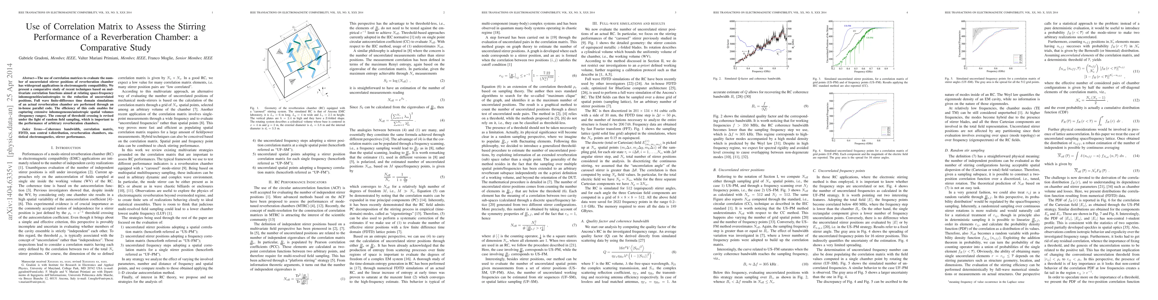 This paper explores the use of correlation matrices to assess the stirring performance of reverberation chambers, comparing recent multivariate correlation techniques. It employs full-wave finite-difference time domain simulations to analyze space-frequency inhomogeneities, revising the concept of threshold crossing for better chamber performance.