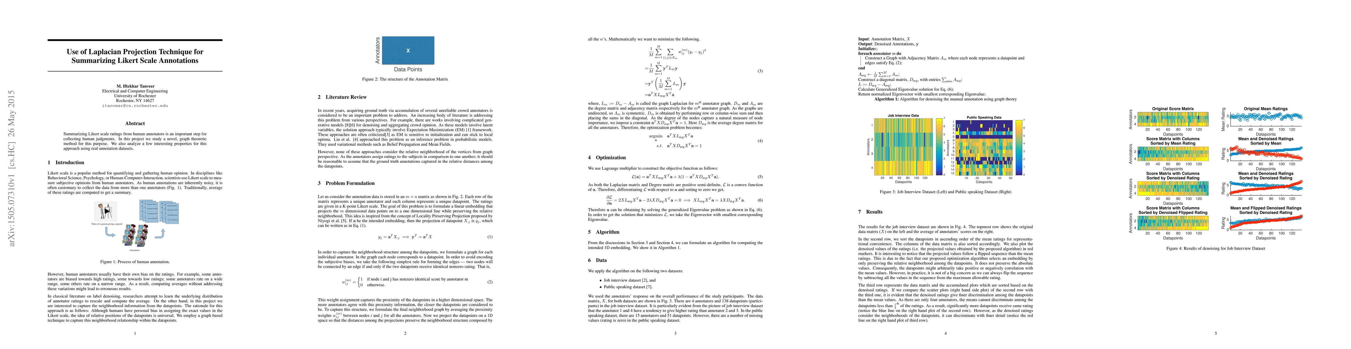 Summarizing Likert scale ratings from human annotators is an important step for collecting human judgments. In this project we study a novel, graph theoretic method for this purpose. We also analyze a few interesting properties for this approach using real annotation datasets.